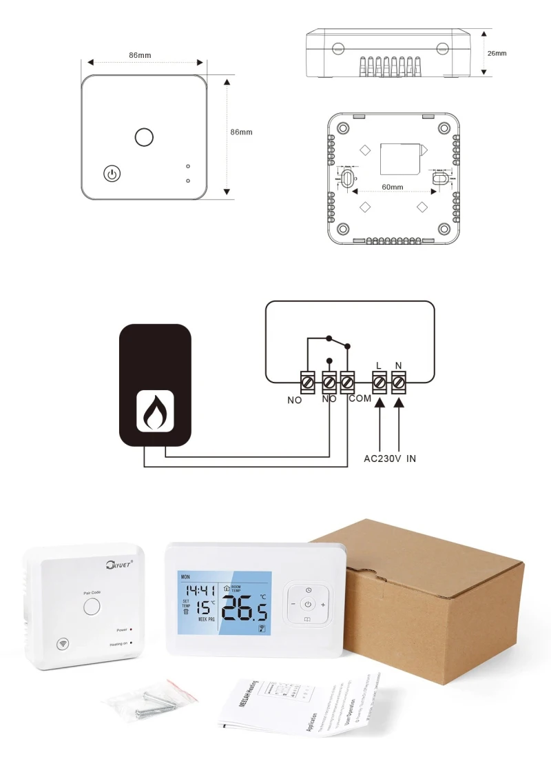 1 * 온도 조절 조절기, 1*433 무선 패널, 1 * 수동, 1 * 설치 나사 팩