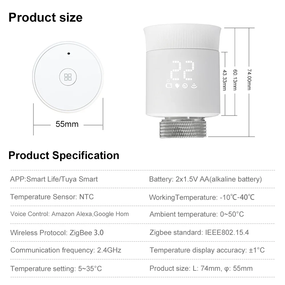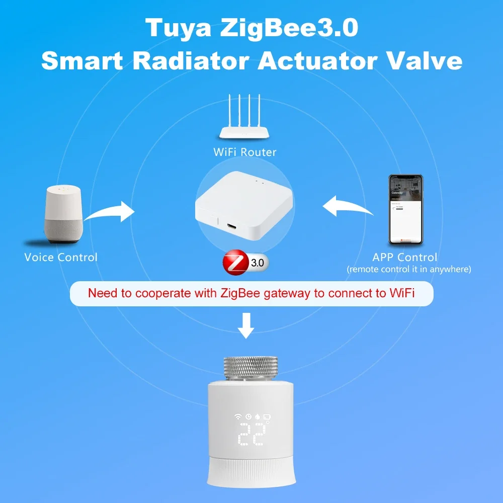 Tuya ZigBee 3.0 새로운 스마트 라디에이터 액추에이터 밸브 프로그래밍 가능한 온도 조절기 온도 히터 음성 제어 알렉사 구글 홈