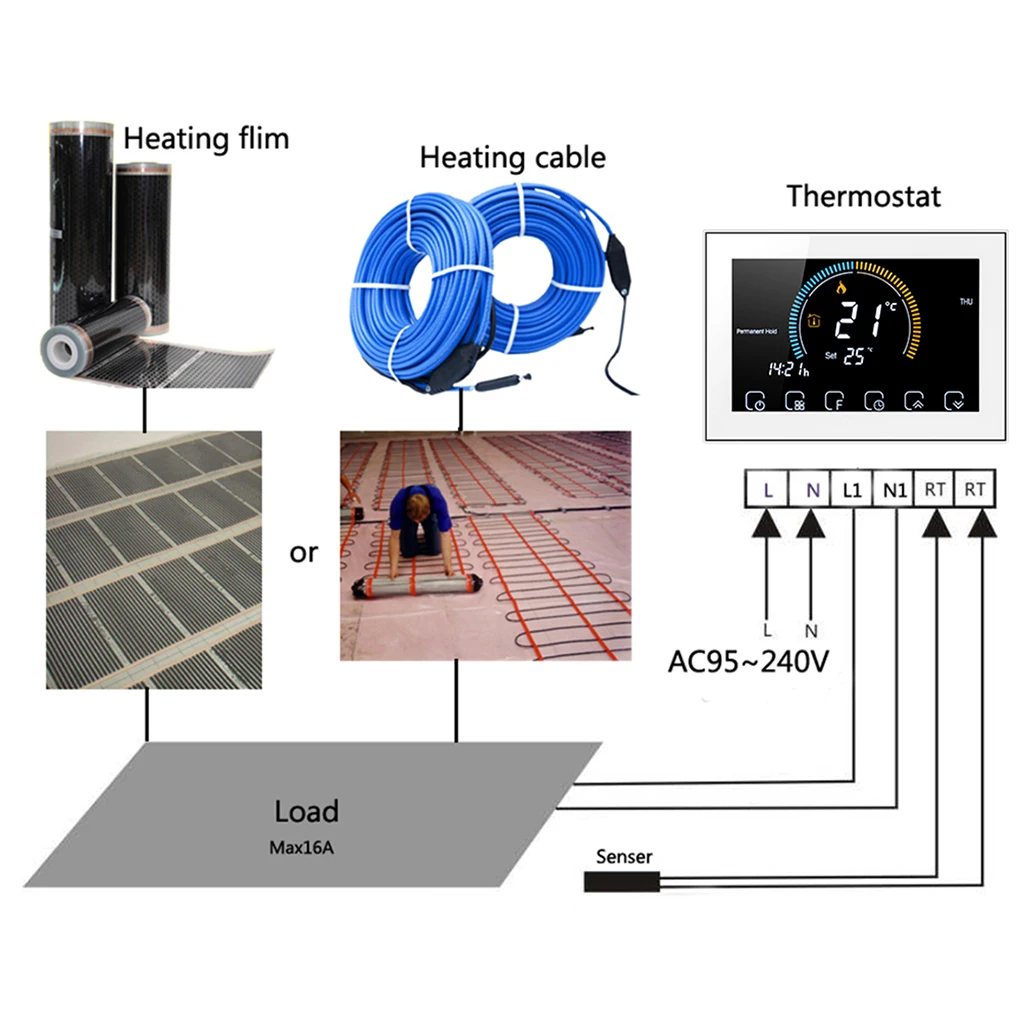 Wi-Fi 스마트 온도 조절기 온도 컨트롤러 BHT 8000 물/전기 바닥 난방 물/가스 보일러 작동 음성 APP 제어