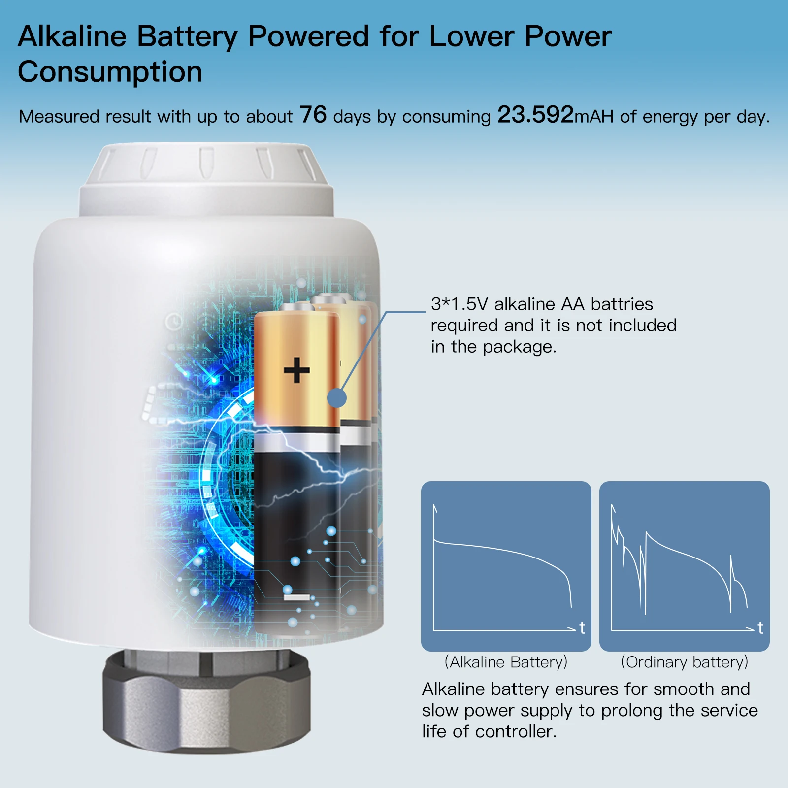 알렉사와 구글 홈 호환:스마트 라디에이터 밸브 컨트롤러를 Alexa 또는 Google Home에 추가하여보다 편리한 생활 경험을 위해 집 온도 제어를위한 간단한 음성 명령 사용; 편의를 위해 APP에서 창 확인 및 온도 보정이 지원됩니다.