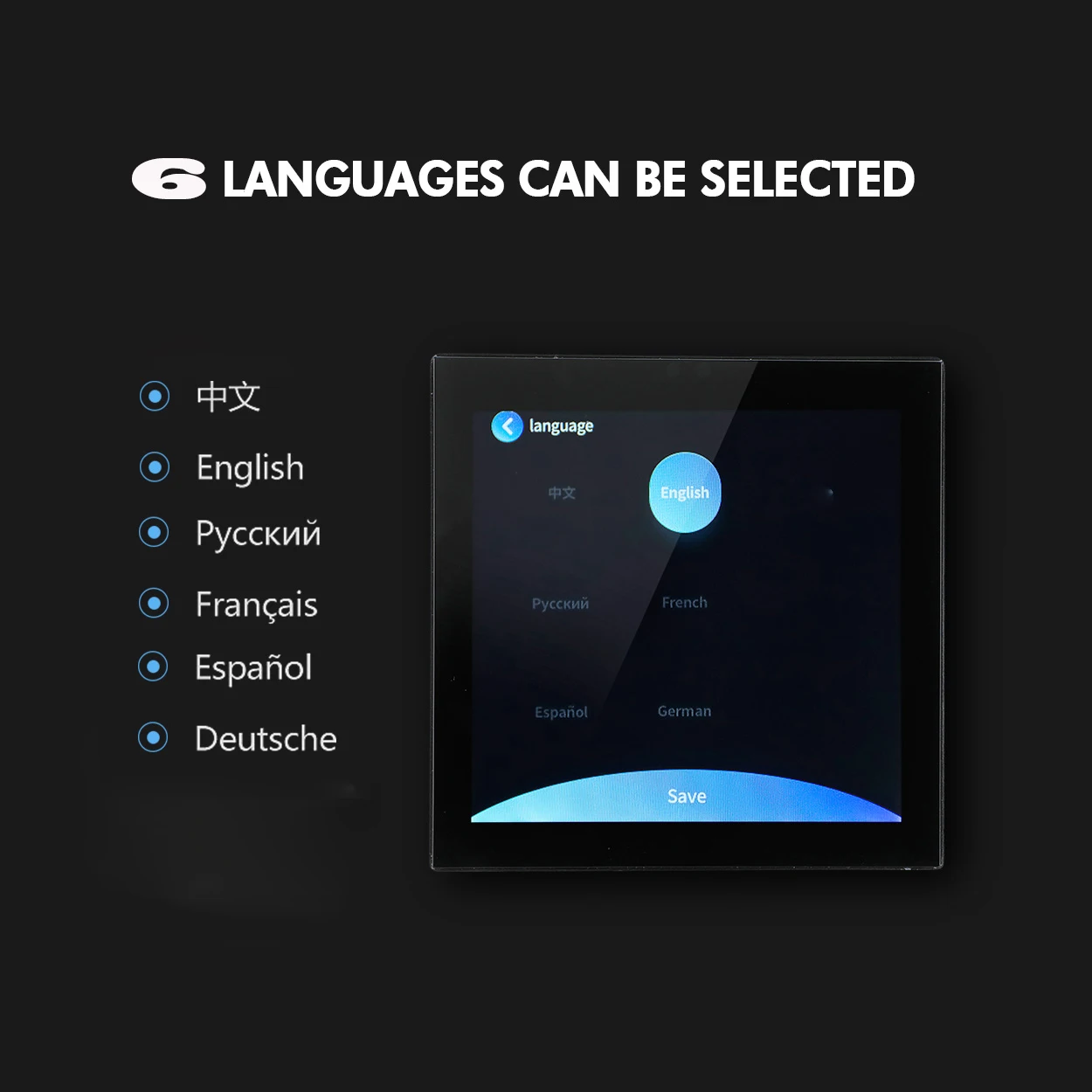 【6 개 언어 선택】 중국어, 영어, 러시아어, 프랑스어, 스페인어, 독일어