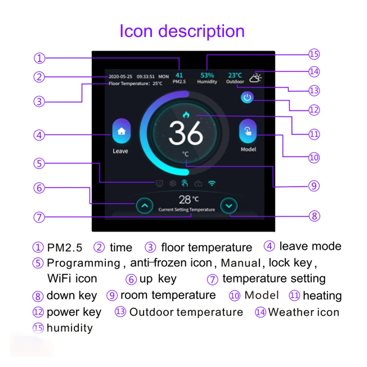 【정확한 온도】 내부 센서 바닥 센서, 지각 주변 온도 및 바닥 온도. 온도, 1 °C 정확도를 자동으로 얻습니다.