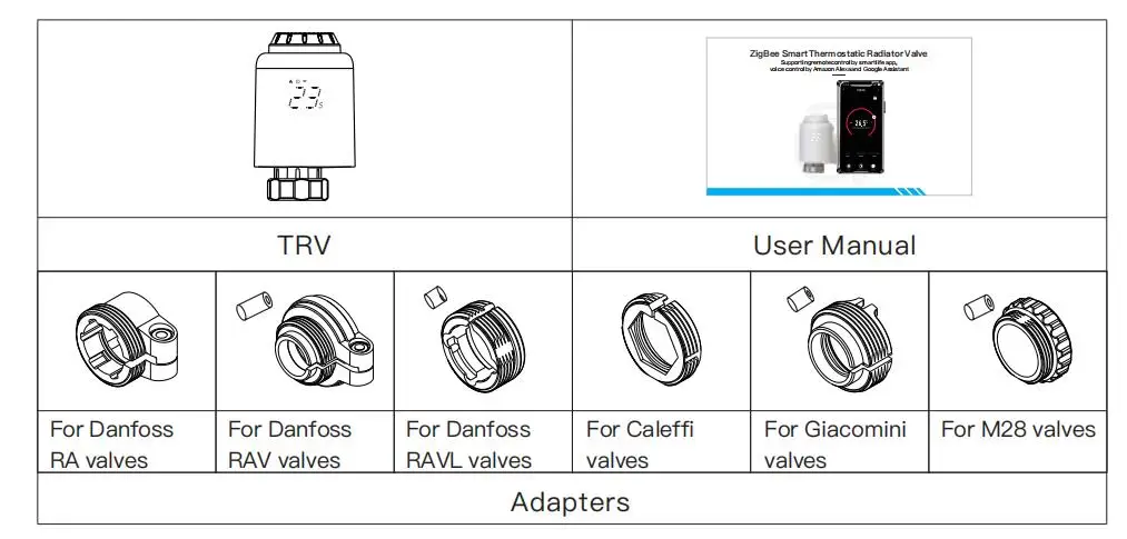 우리의 스마트 TRV 6 가지 유형의 밸브 어댑터로 시장에 나와있는 97% 라디에이터 밸브 인터페이스에 적합합니다.