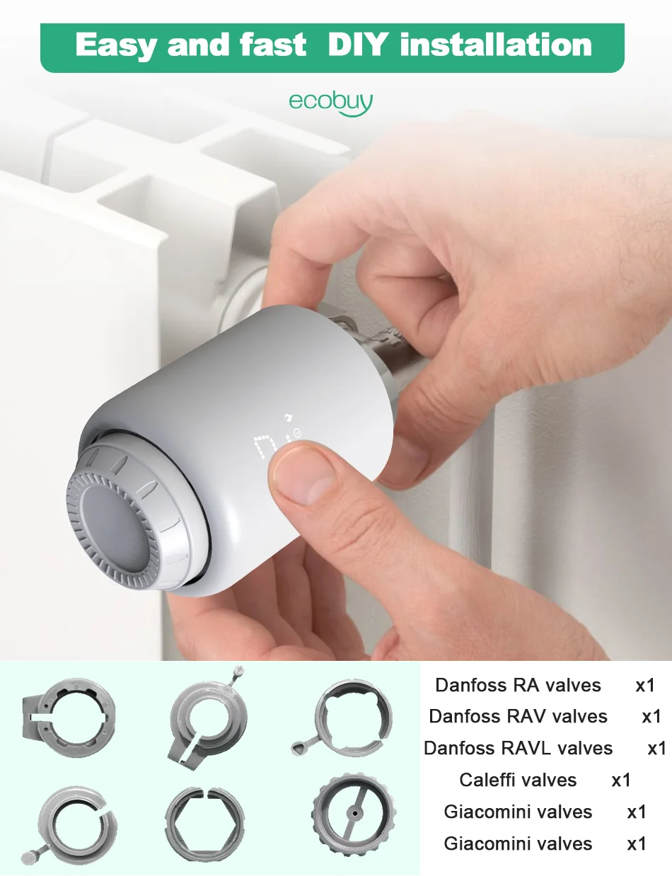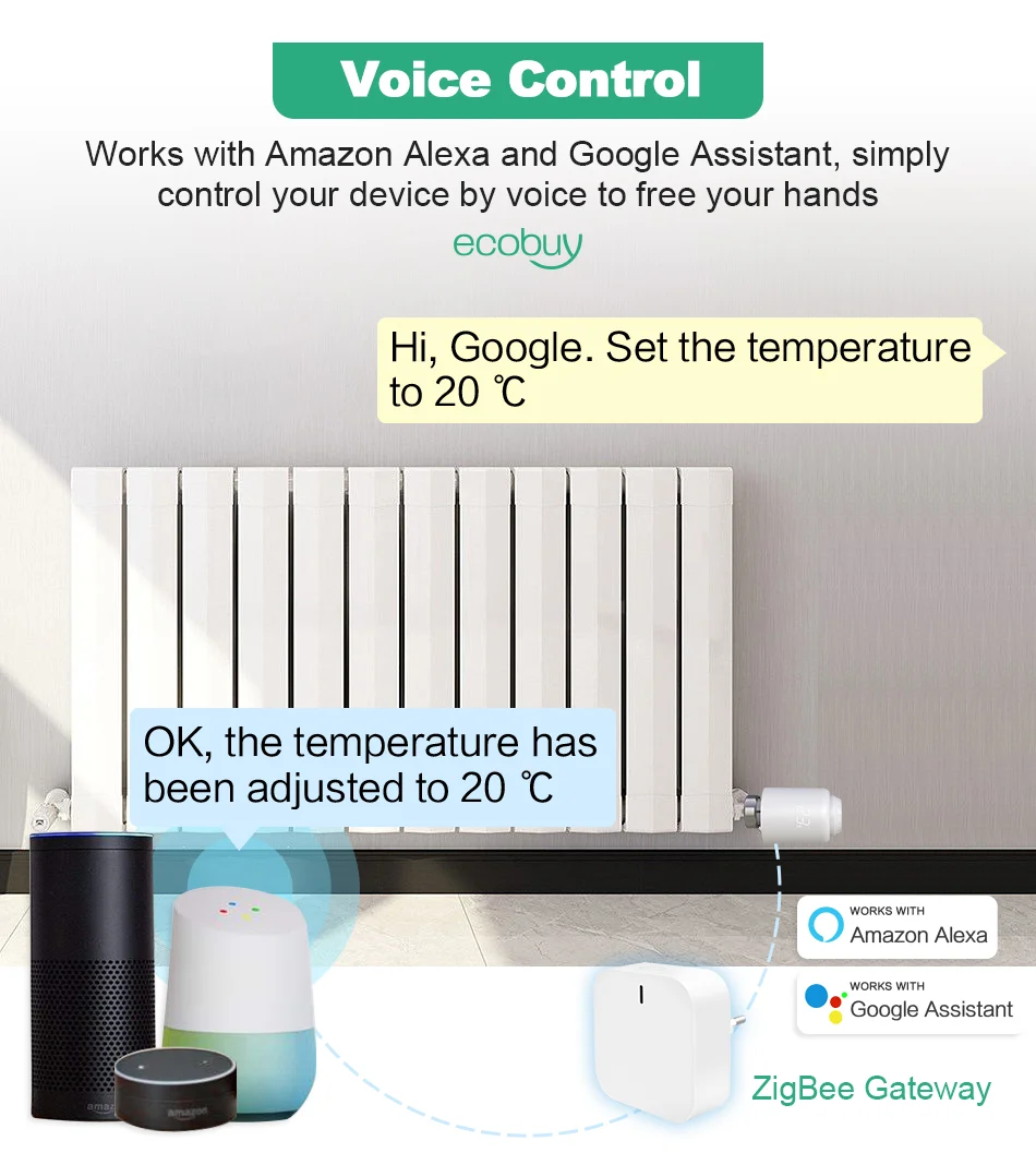 ? Google 홈 및 Alexa와 호환:이 스마트 라디에이터 밸브는 단순한 가제트가 아니라 Google Home 또는 Alexa 지원 장치에 완벽하게 추가되어 스마트 라이프 경험을 향상시킵니다.