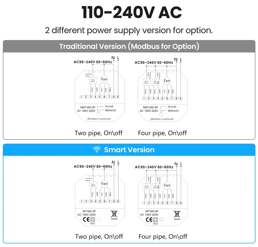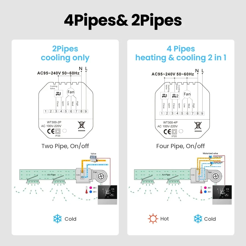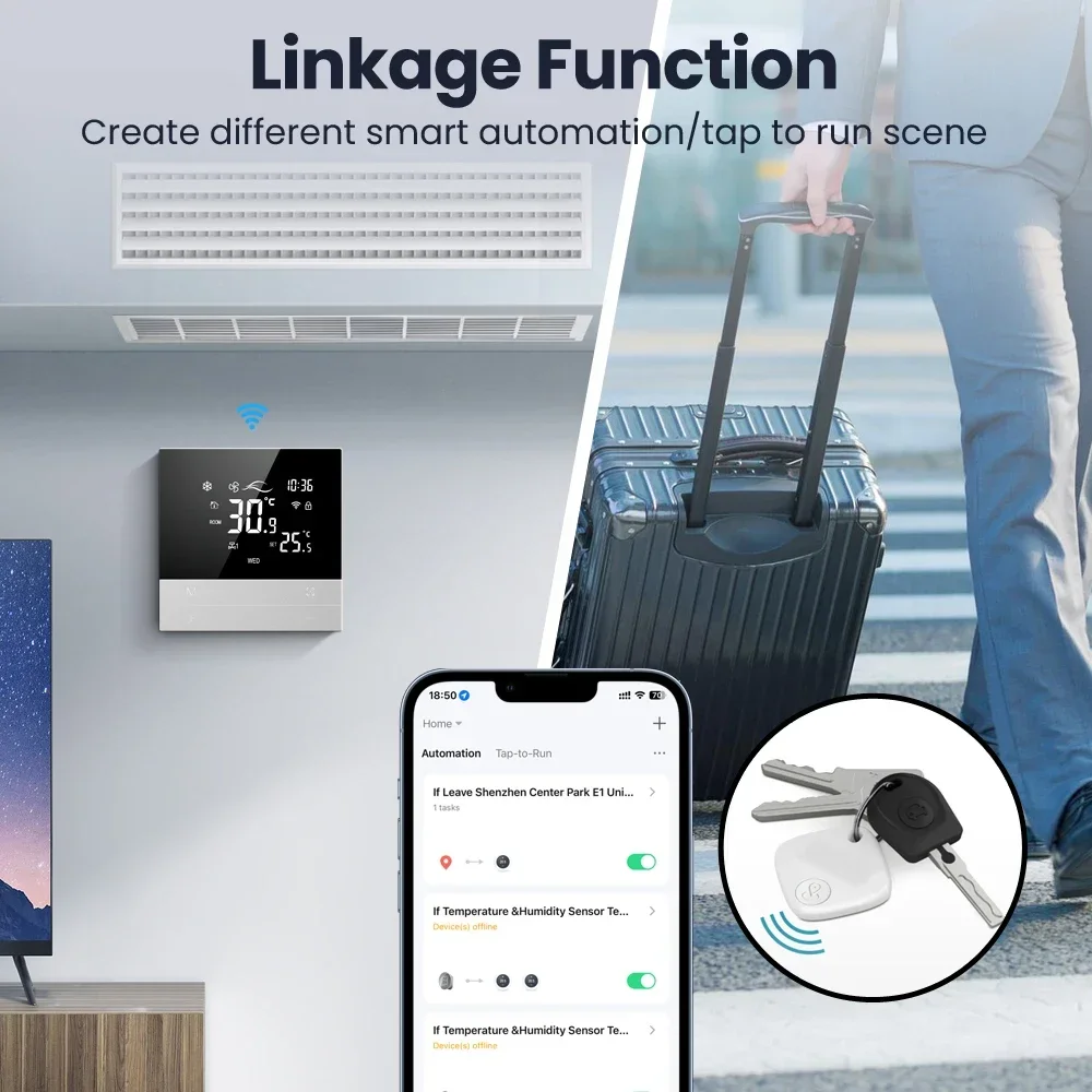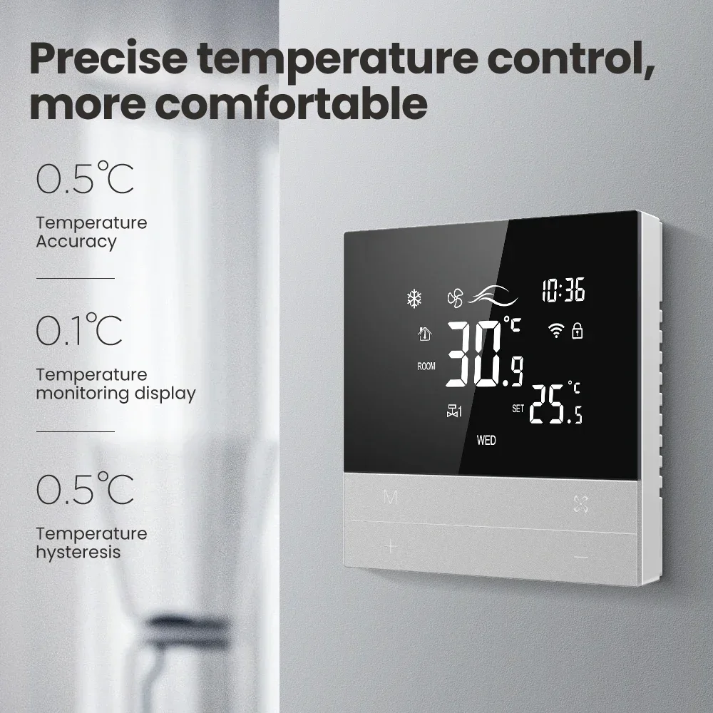 WiFi Tuya 스마트 중앙 에어컨 온도 조절기 스위치 난방 시원한 3 단 속도 팬 코일 유닛 알렉사 구글 홈 작동