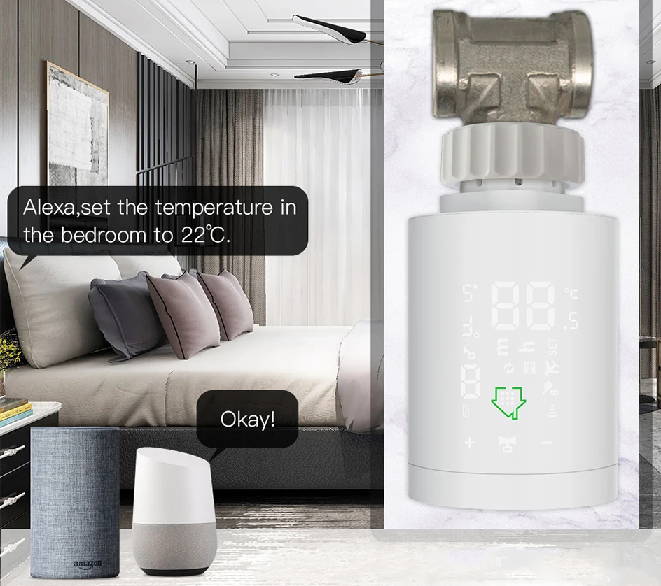 TRV Tuya ZigBee 3.0 스마트 미니 라디에이터 액추에이터 온도 조절기 히터 프로그래밍 가능 TRV 온도 조절 라디에이터 밸브 온도 컨트롤러 Alexa Google 어시스턴트와 스마트 라이프 음성 제어 작업
