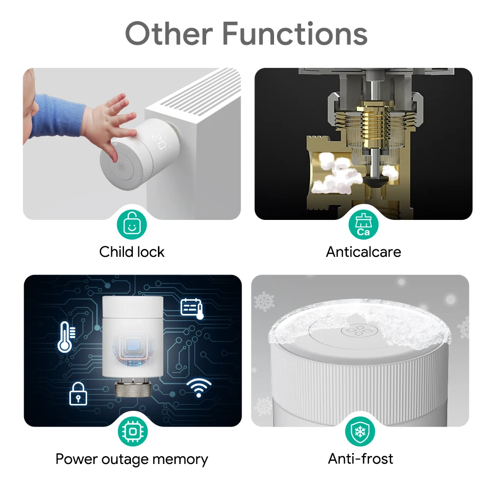 지능형 라디에이터 온도 조절기는 배터리로 작동하며 배선이 없으며 수온식 라디에이터의 온도를 제어하기 위해 쉽게 설치할 수 있습니다. 쾌적한 온도를 제공하면서 에너지 낭비를 줄이고 난방 비용을 절감합니다.