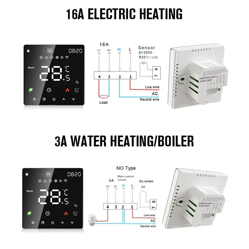연결 기능이있는 3A: 3A 온도 컨트롤러는 강력한 기능을 가지고 있으며 여러 모델을 비축 할 필요없이 온수 가열/가스 보일러/벽걸이 형 보일러에 사용할 수 있습니다.