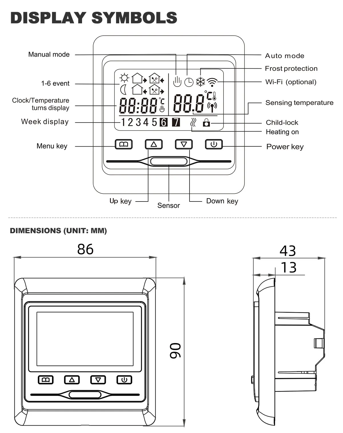 1X3 미터 외부 센서 (전기 바닥 난방 16A 온도 조절기 만 포함)