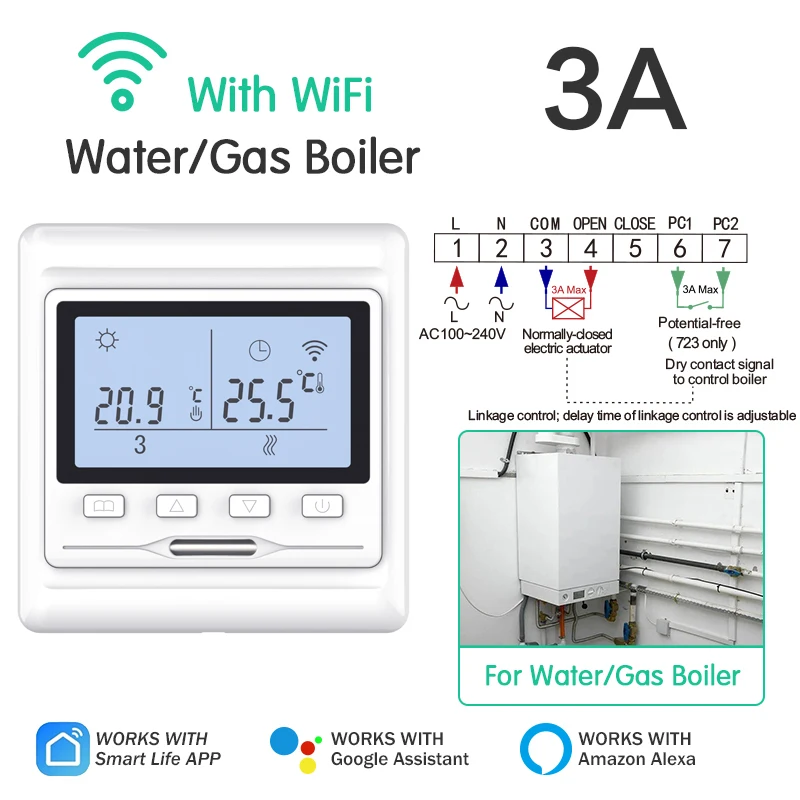 16A 온도 조절기에만 외부 온도 감지 케이블이 포함되어 있습니다.