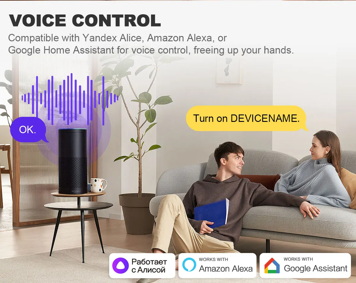 Yandex 앨리스, 아마존 알렉사, 구글 홈 음성 제어 지원