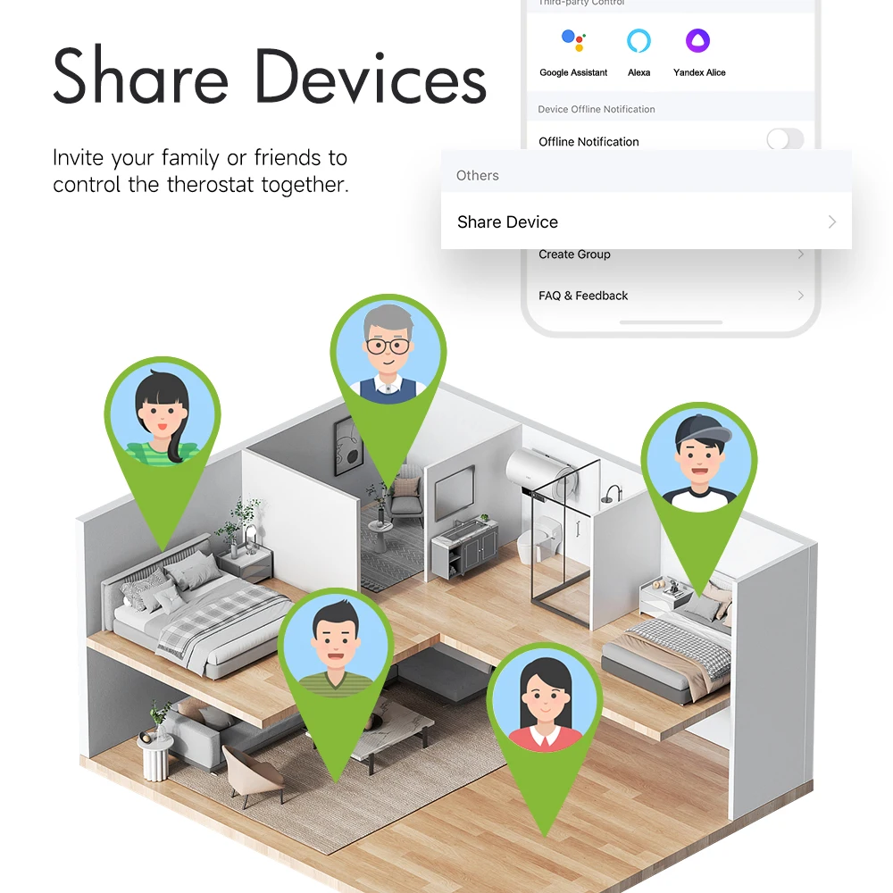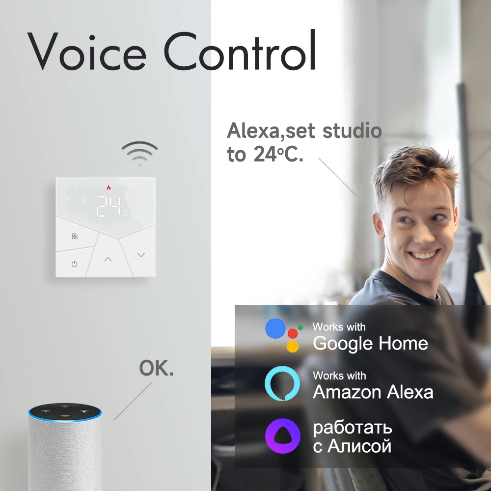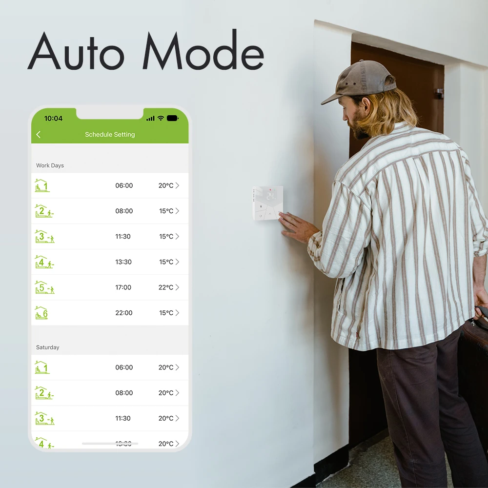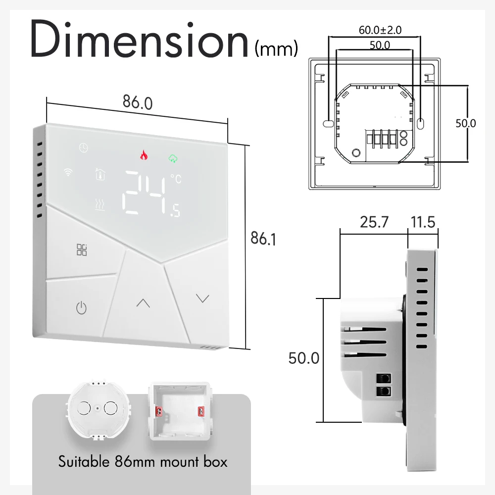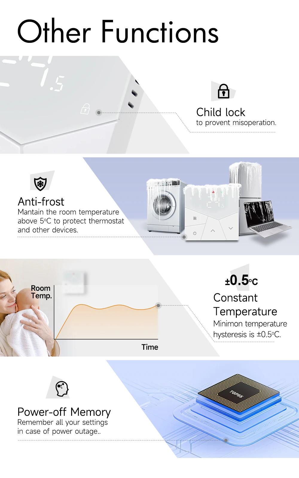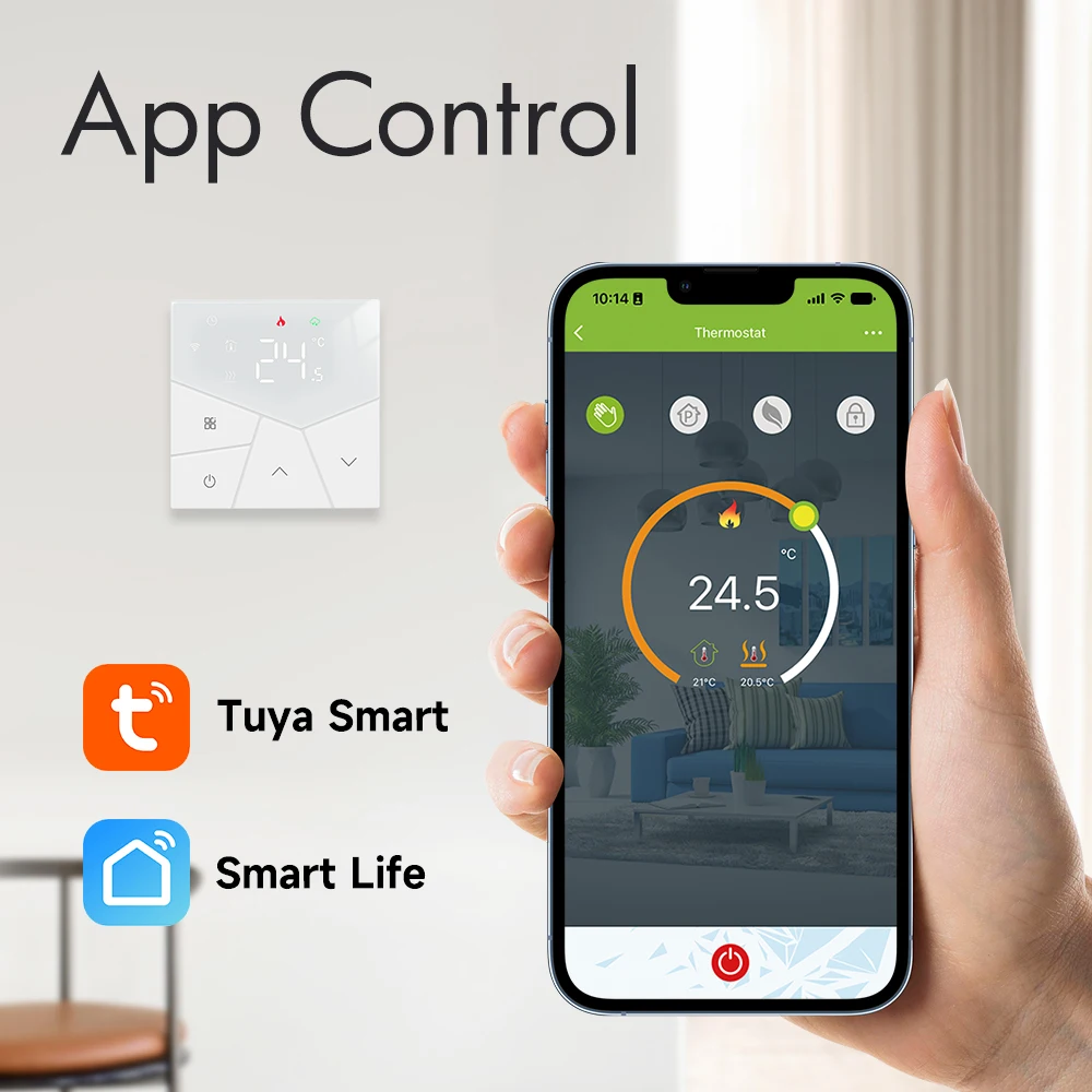 【APP 제어】 스마트 WiFi 온도 조절기는 Tuya 및 Smart Life 앱에 연결하여 집으로 돌아 오기 전에 휴대 전화를 통해 실내 온도를 원격으로 제어 할 수 있습니다.