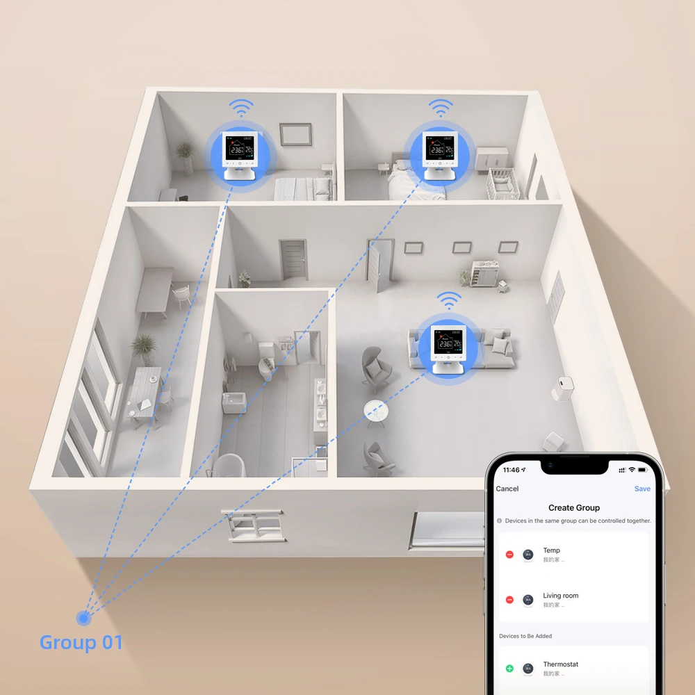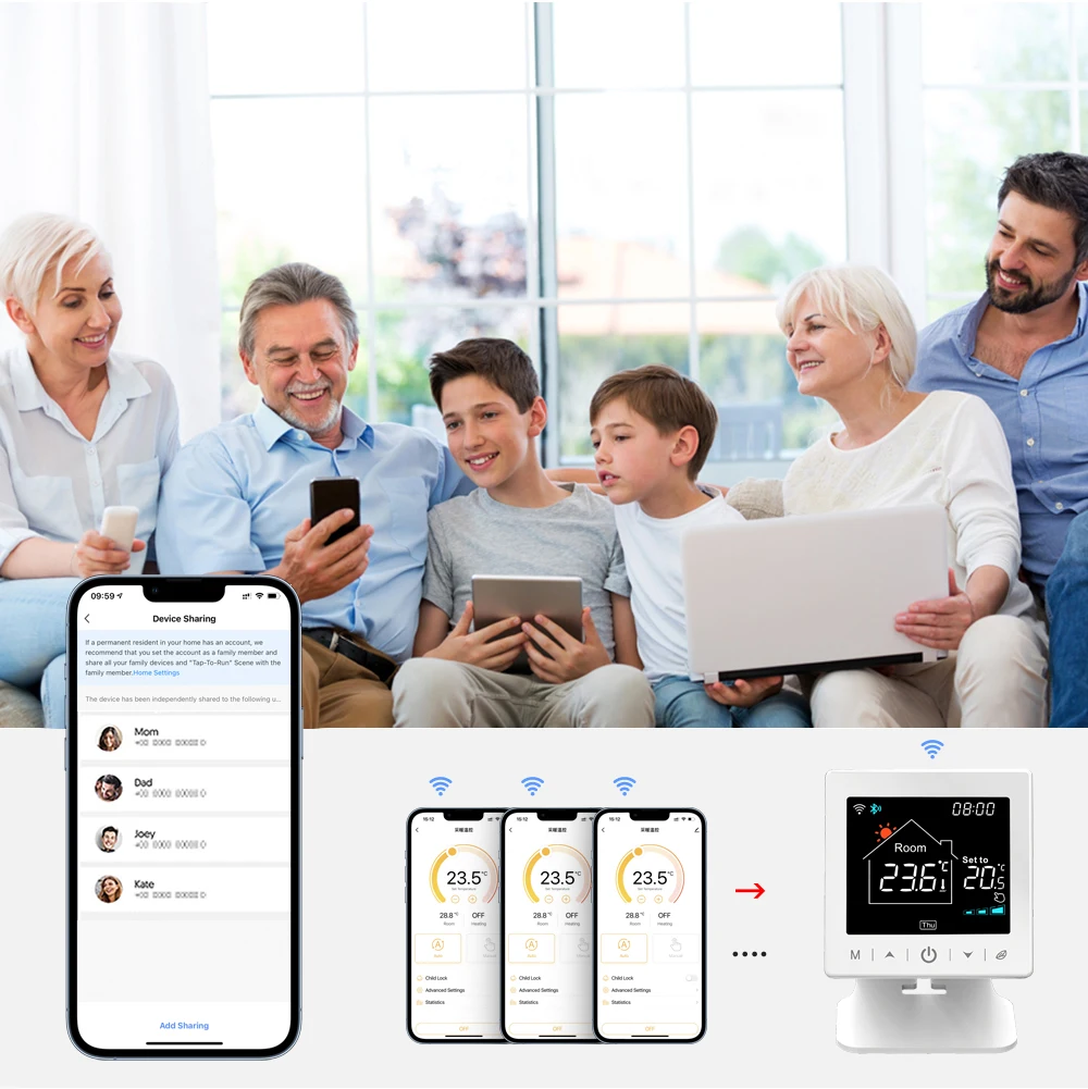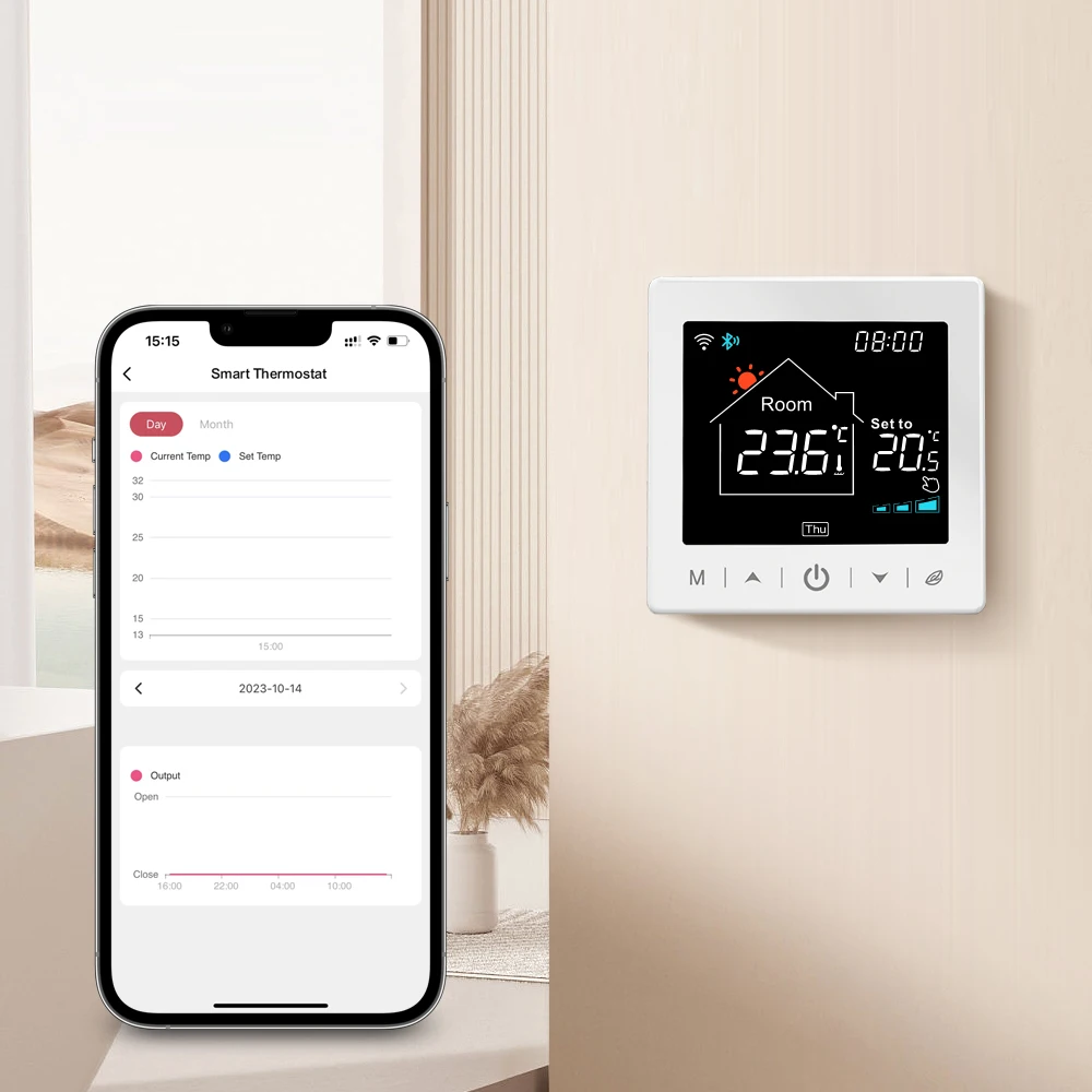 5 + 2/6 + 일주일에 1/7 일, 평일에 6 시간 슬롯, 휴식 일에 2 시간 슬롯, 다른 온도 설정을 지원하고 일정에 따라 실행합니다.