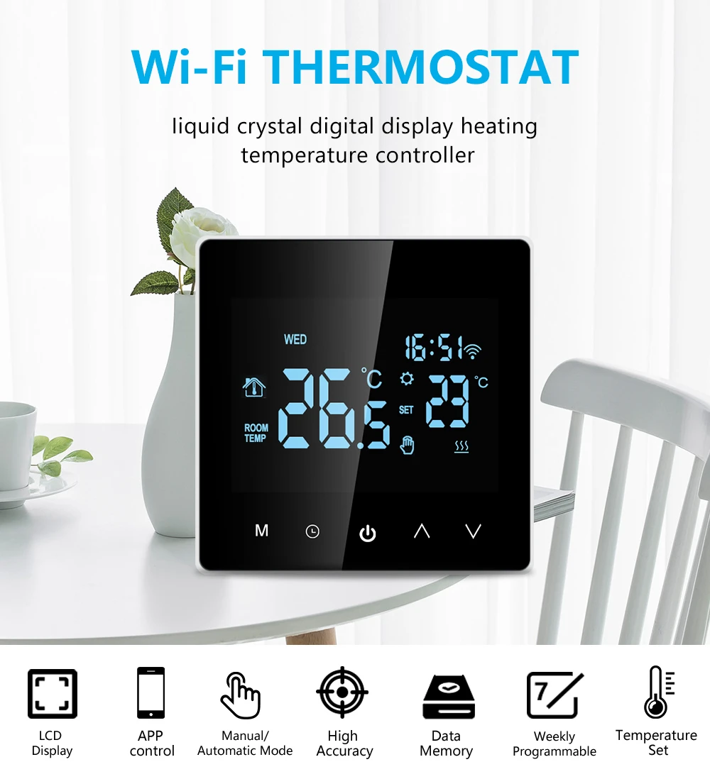 투야 와이파이 스마트 온도 조절기 전기 바닥 난방 LCD 터치 물/가스 보일러 온도 조절기 온도 스마트 라이프 APP 음성 제어