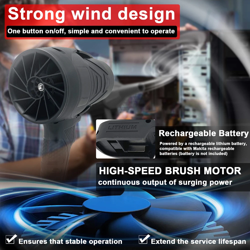 【예외적인 강풍 및 높은 방열】:안정적인 작동과 완벽한 먼지 제거 효과 제공. 인상적인 풍속을 생성 할 수있는 내부 고속 브러시 모터는 500 g의 높은 풍력을 달성 할 수 있습니다. 이 팬은 밀폐된 공간에서 뜨거운 공기를 효과적으로 배출하고 작동 수명을 연장하며 내부 요소를 보호하기 위해 잘 설계된 통풍구가 특징입니다.