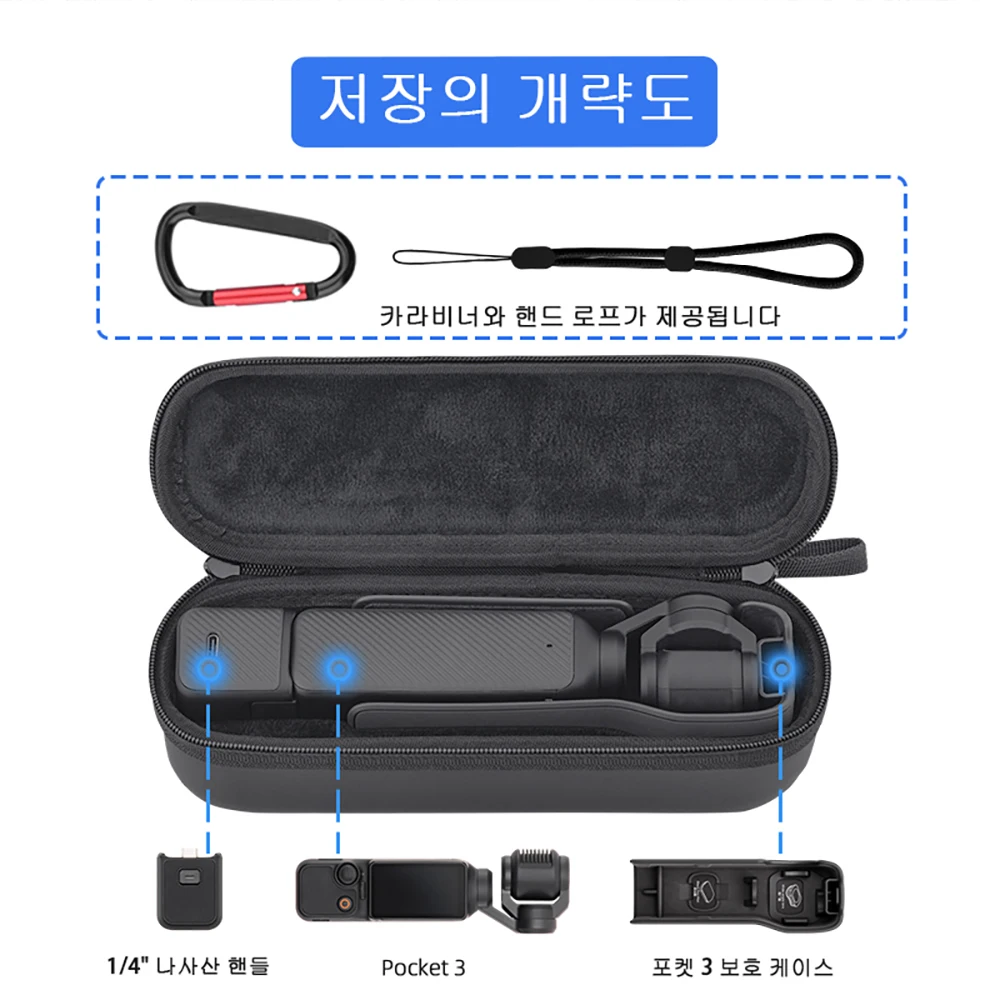 1. Mini Organizer는 크기가 작고 무게가 가벼운 DJI Pocket 3 에 적합하며 Pocket 3 카메라를 휴대하여 이동 중에도 촬영할 수 있습니다.