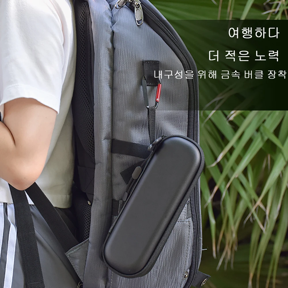 4. 야외 촬영을 위해 카메라를 휴대해야하는 점을 고려하여 휴대를보다 편리하게 휴대 할 수 있도록 가방에 카라비너와 핸드 스트랩을 선물로 장착했습니다.