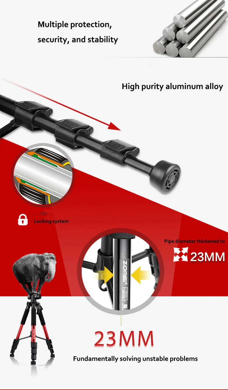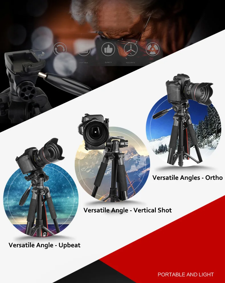? 안정적이고 신뢰할 수있는:삼각대의 튼튼한 다리와 안정적인 받침대는 카메라의 견고한 기초를 제공하여 모든 샷을 안정적이고 안정적으로 유지할 수 있습니다.
