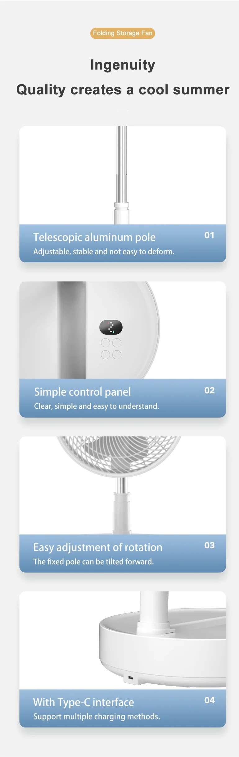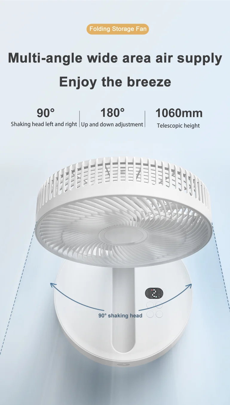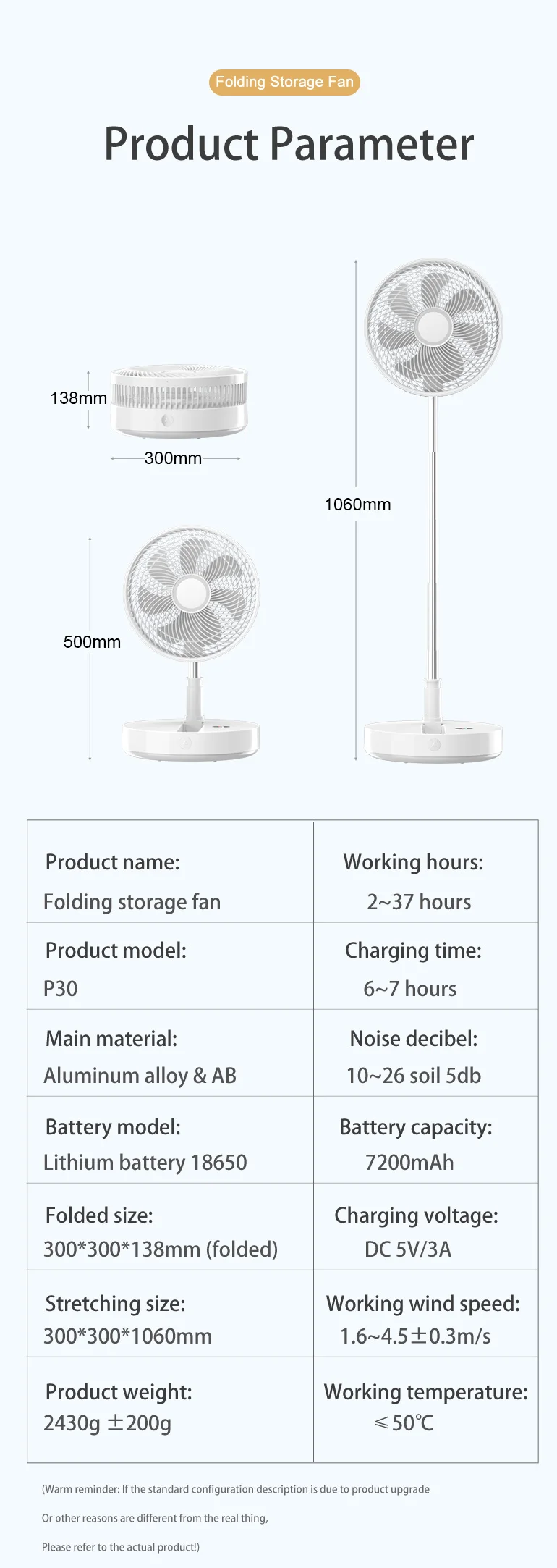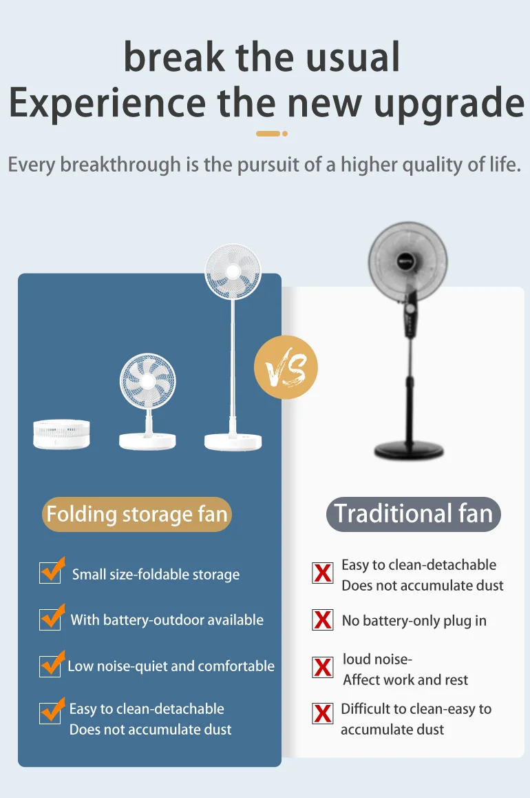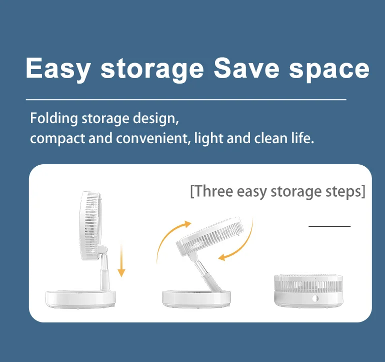 접이식 저장 팬: 세척이 용이함-분리형 먼지가 쌓이지 않음/스몰 사이즈 접을 수 있는 보관/배터리 포함-실외 사용 가능/저소음-조용하고 편안합니다.