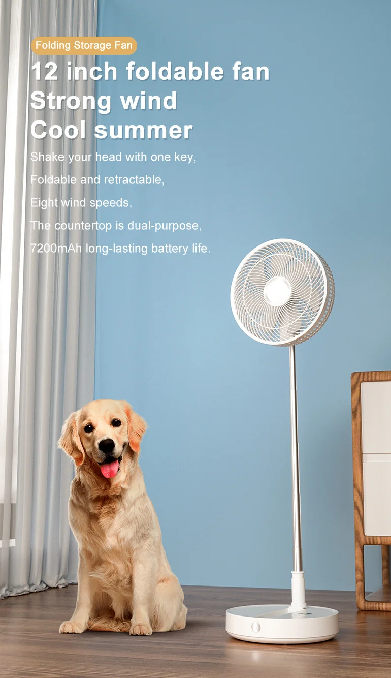 12 인치 접이식 선풍기 강한 바람 시원한 여름, 하나의 키로 흔들리는 머리, 접이식 및 개폐식, 8 개의 풍속. 조리대는 이중 용도이며 7200mAh 배터리 수명이 오래갑니다.