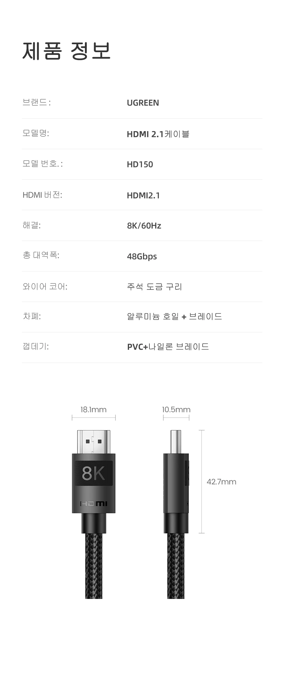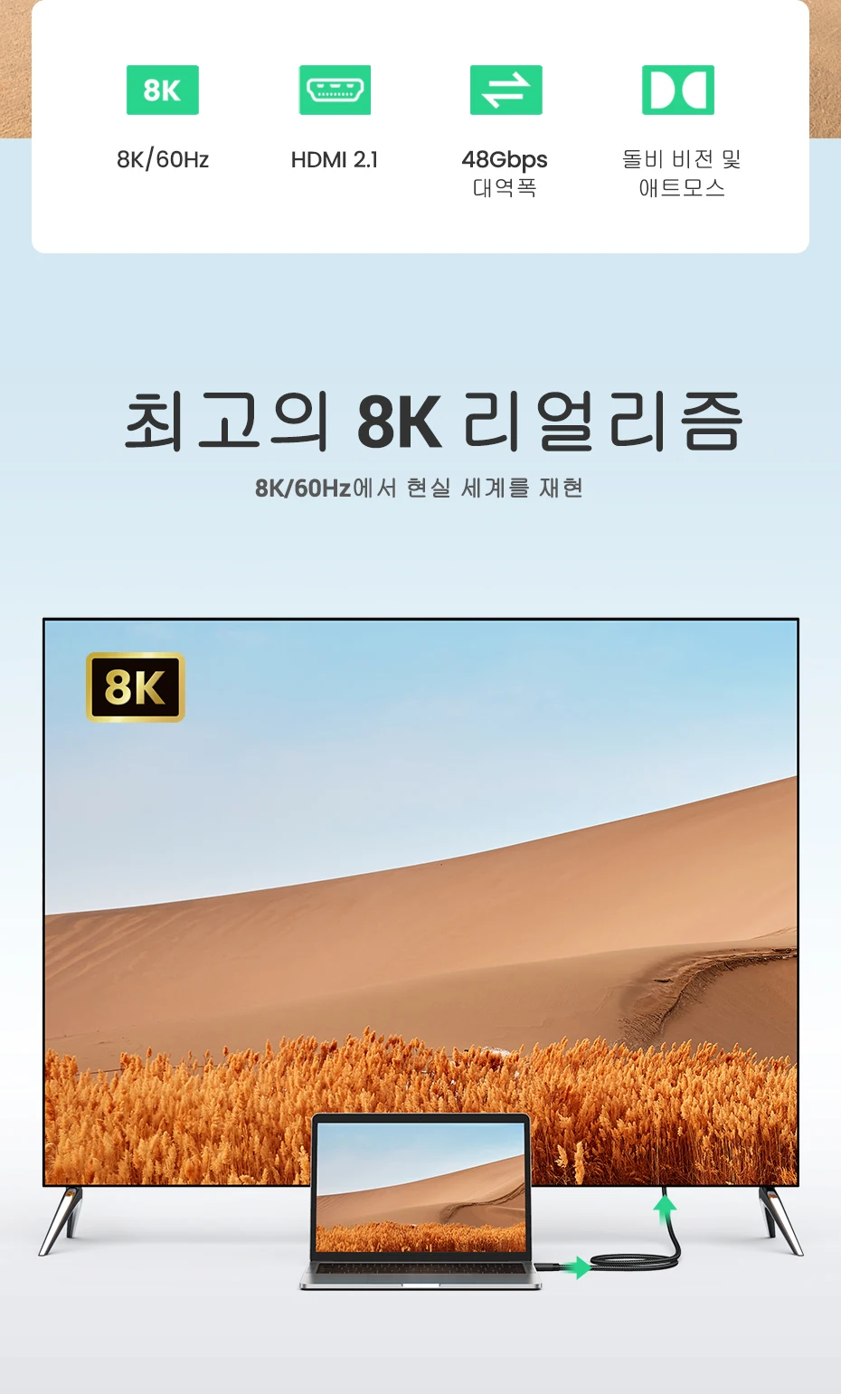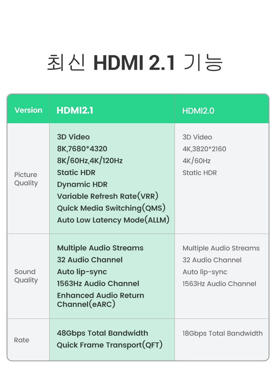48Gbps 대역폭 최신 기능 HDR, HDCP 2.2 및 2.3, DTS:X, 돌비 Atmos, 돌비 비전.