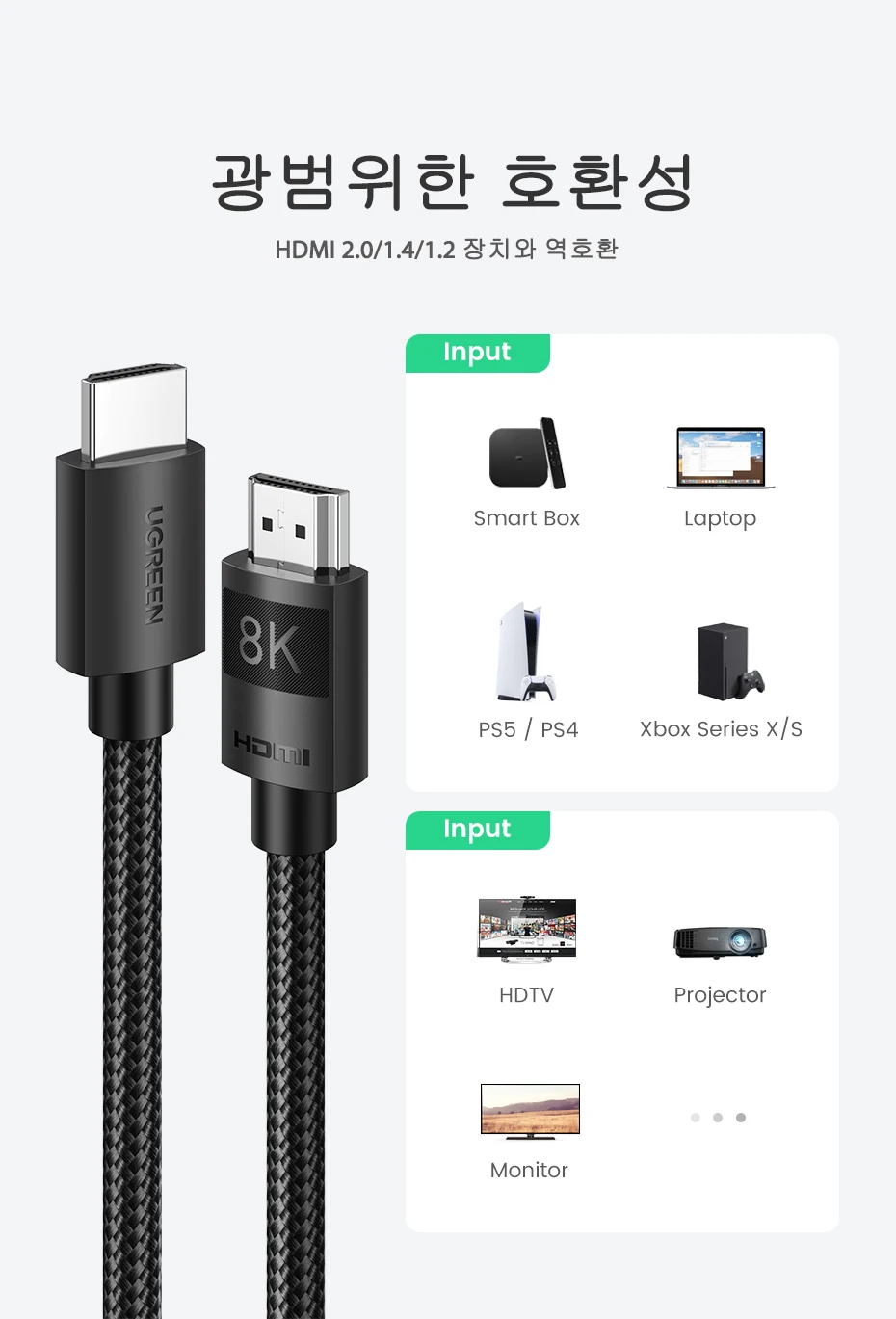 지원 8K 50Hz, 4K 120Hz UHD, 4K 100Hz 및 더 많은, 8k hdmi 2.1 버전 케이블은 매우 HD 시네마틱 경험 및 3D 시각 효과를 제공합니다, 그것은 당신의 스트리밍 장치, 애플 TV 4K, NVIDIA 방패 TV, CD/DVD/블루 레이 플레이어, 화재 TV, Roku 울트라, PS5, PS4, , Xbox One/360, Nintendo 스위치, 컴퓨터 또는 4K/HD TV, 모니터, 디스플레이 또는 프로젝터에 다른 HDMI 지원 장치.