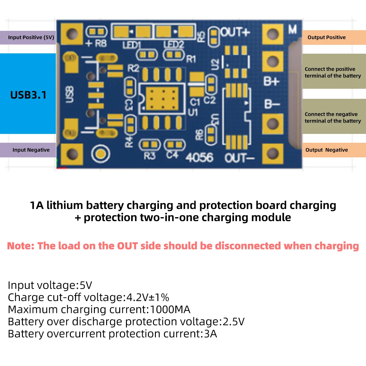 C타입 마이크로 USB 리튬 배터리 충전기 모듈 충전 보드 보호 이중 기능 1A DIY 5V 1A 18650 TP4056 5 개 1