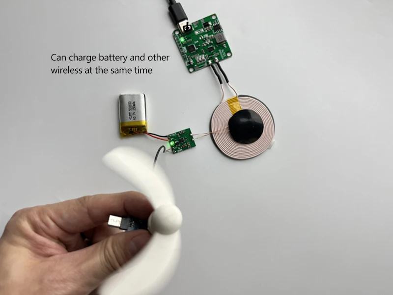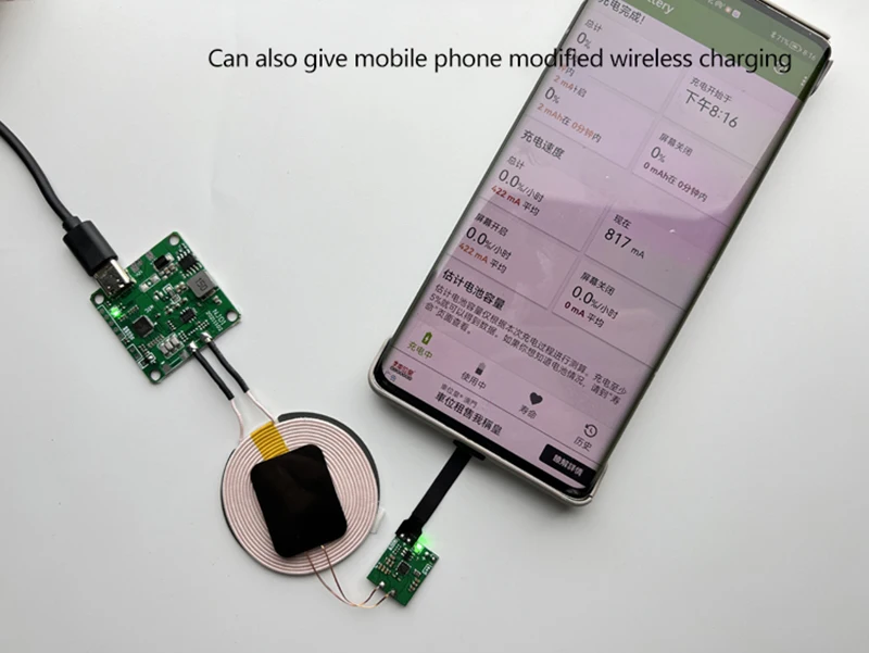 무선 출력 5V1A = 5W, 리튬 배터리 3.7V-4.2 V에 연결