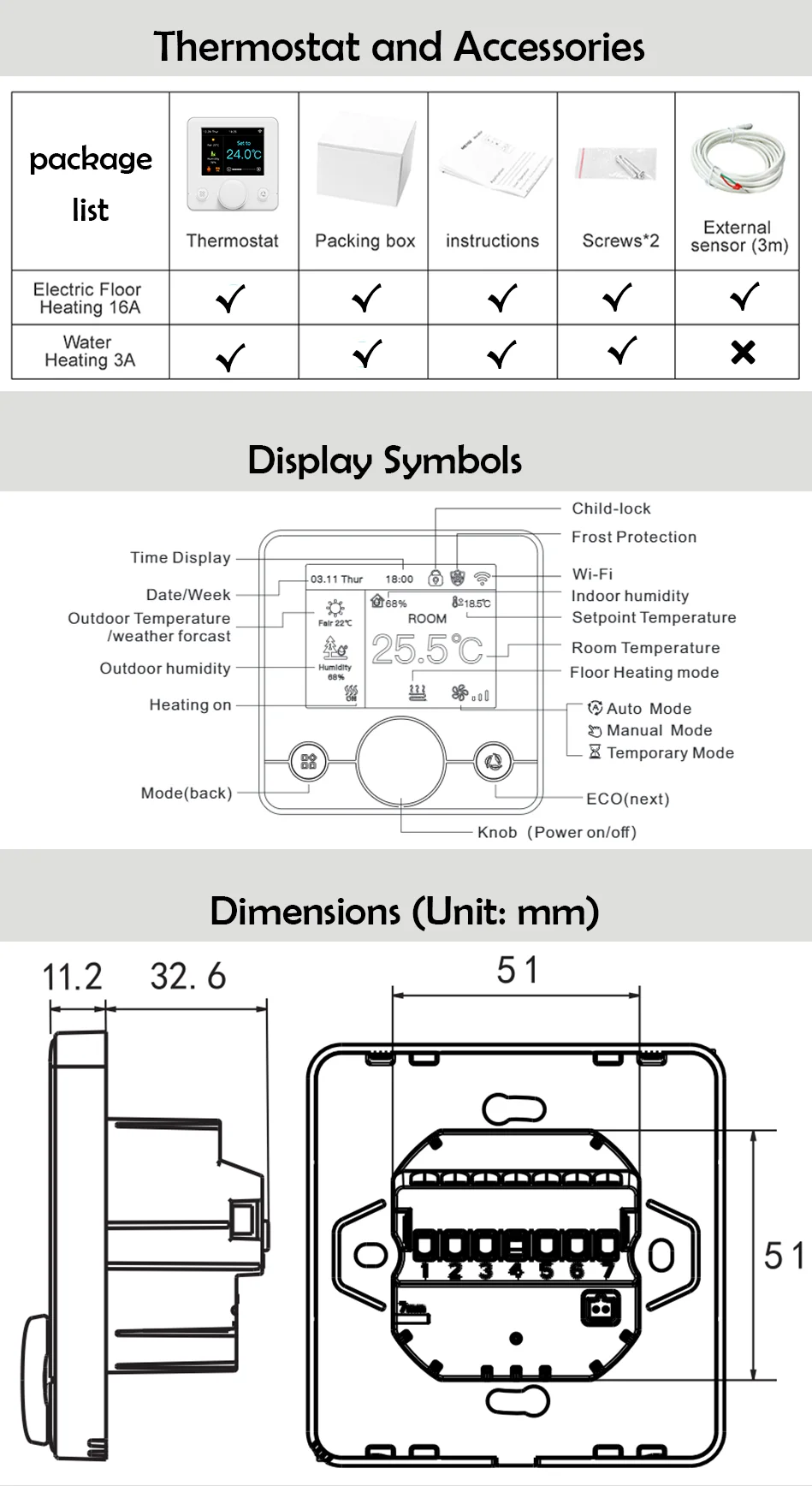 1pcs*floor sensor (only for electric floor heating)