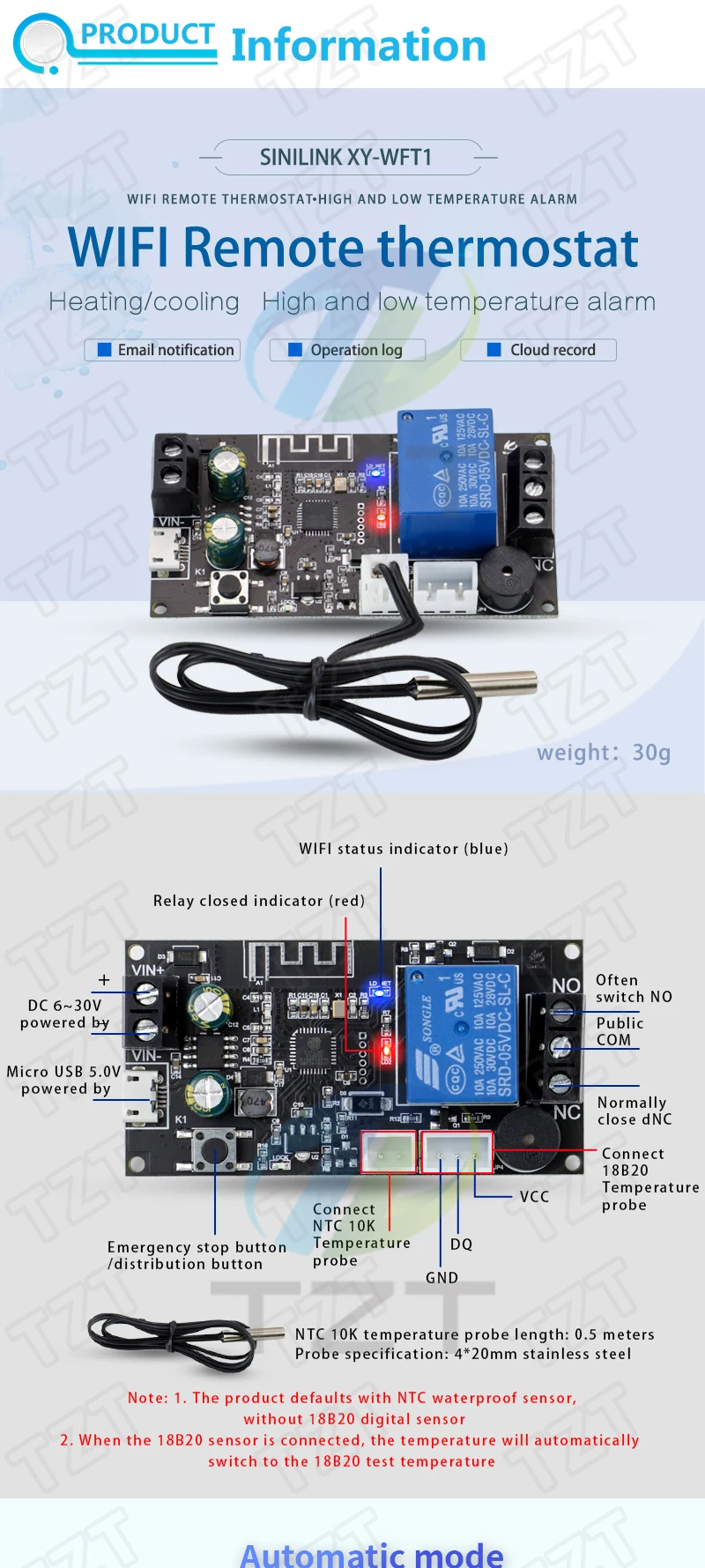 WIFI 원격 온도조절기 고정밀 온도 컨트롤러 모듈 냉각 및 가열 앱 온도 수집 XY-WFT1 WFTX