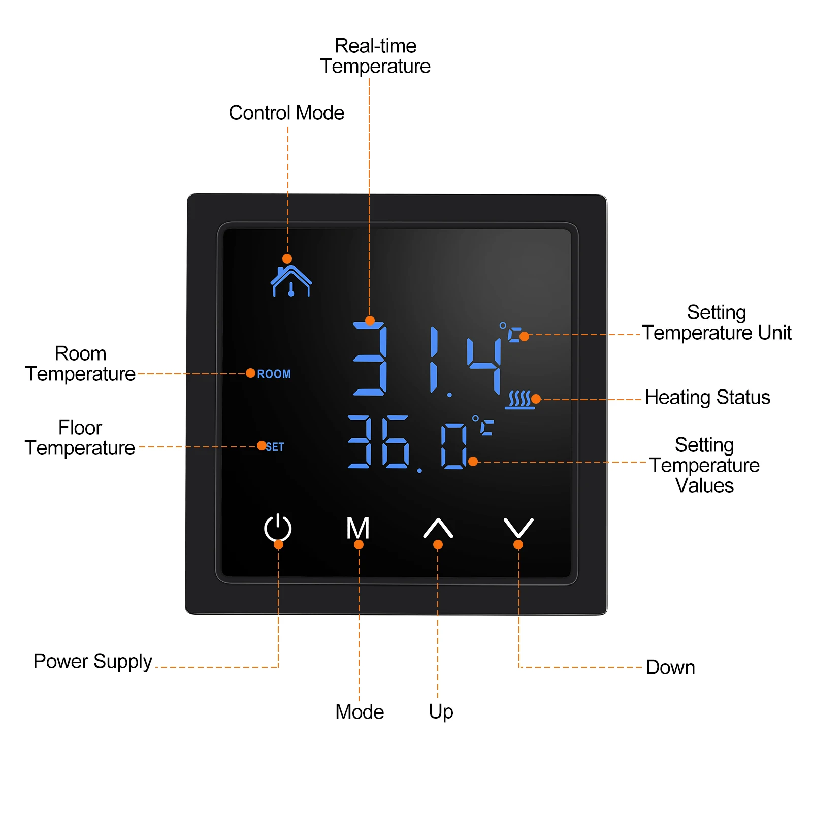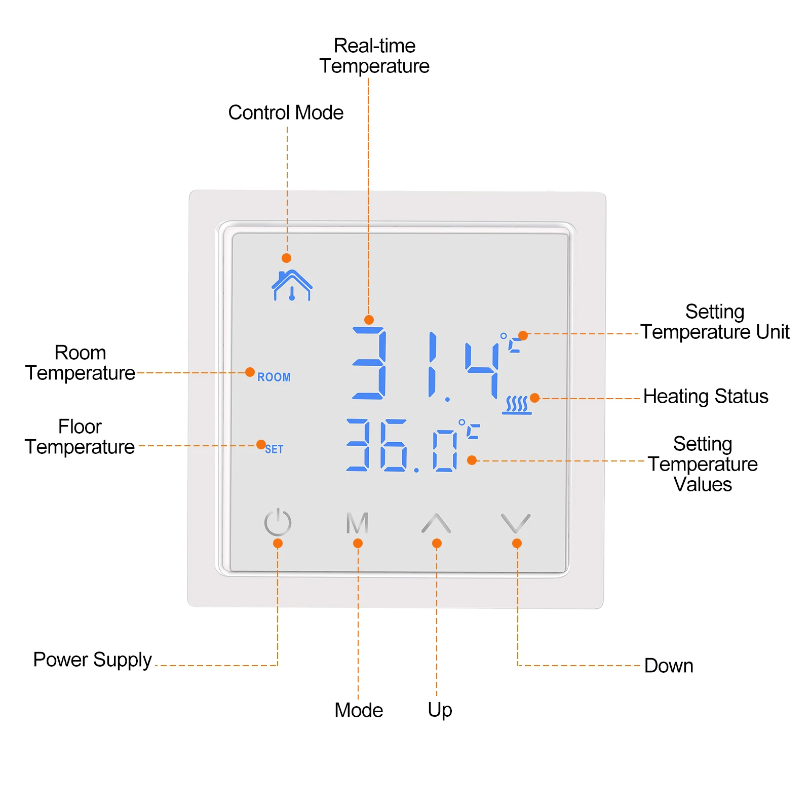 이 서모 스탯은 전기 난방 시스템에 적합합니다. 집, 사무실, 쇼핑몰, 호텔 등과 같은 다양한 환경에 완벽한 선택입니다.