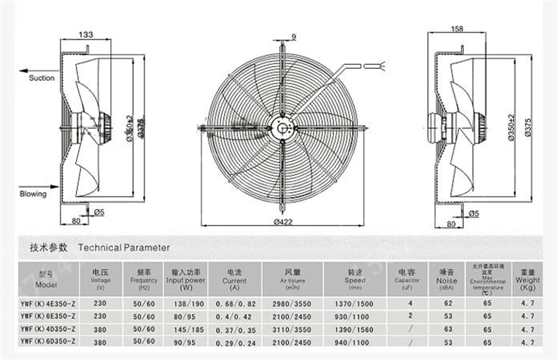 축류 선풍기 냉각 외부 로터 선풍기 냉각 장비 응축기 공기 냉각 라디에이터 4D350 4E350