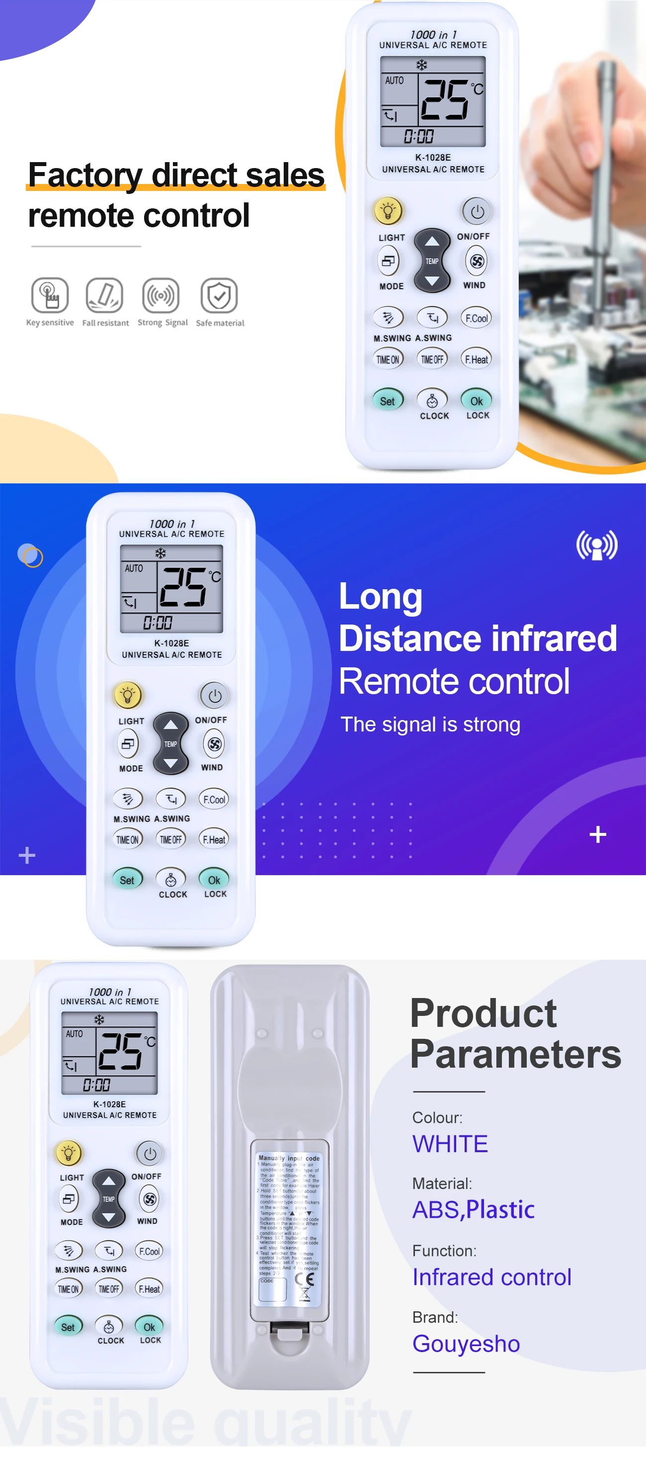 리모컨 AC 디지털 LCD 무선 에어컨 범용 1000 in 1 K-1028E 신제품