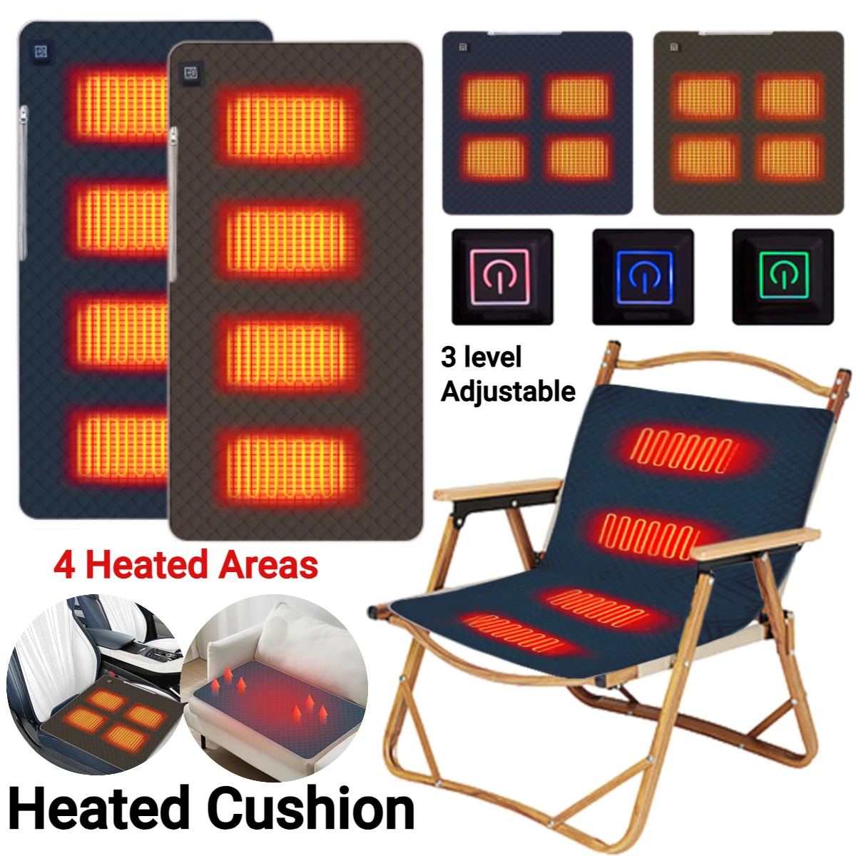 4 온열 구역 캠핑 의자 온열 쿠션 3 온도 조절 가능 온열 의자 방석 타입 C/야외 여행용 USB 충전