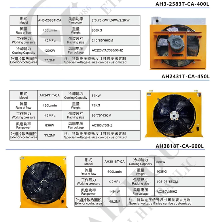 공기 냉각기는 가벼운 무게, 좋은 지진 강도, 높은 열 전달 효율을 가진 알루미늄 합금 재료로 만들어집니다. 효율적인 핀을 채택한 채널의 구조에서 최대 열 전달 면적이 증가하고 총 열 전달 계수가 증가합니다.