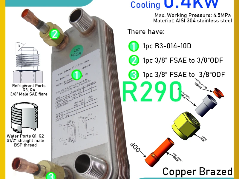 1400BTU 물 냉각기 및 온수기 선택 ANSI 304 스테인레스 스틸 플레이트 열 교환기 역 카르노 사이클