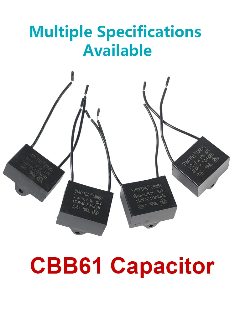 CBB61 팬 커패시터 450V 터미널 천장 팬 모터 실행 직사각형 커패시터 1uf/1.2uf/1.5uf/2uf/2.5uf/3uf/3.5uf/4uf/5uf/6uf