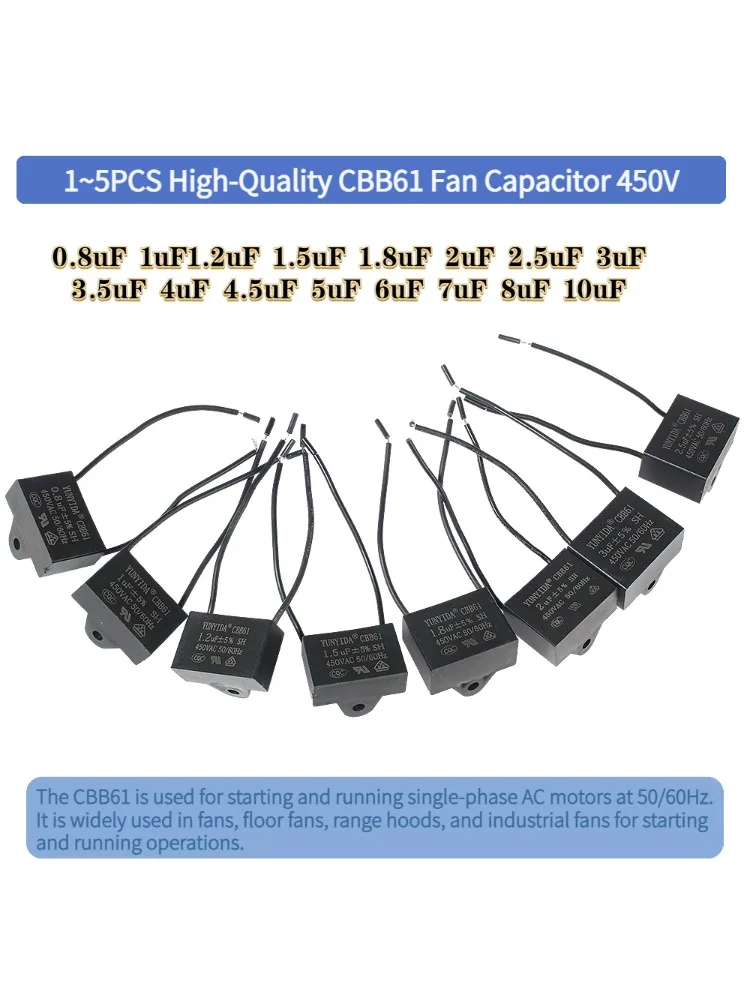 CBB61 은 50/60Hz 단상 AC 모터를 시작하고 실행하는 데 사용됩니다. 이 제품은 스몰 사이즈, 긴 수명, 높은 안정성 및 높은자가 치유 성능의 특성을 가지고 있습니다. 팬, 천장 팬, 레인지 후드 및 송풍기의 시작 및 작동에 널리 사용됩니다. 팬, 천장 팬, 레인지 후드 및 송풍기의 ng.