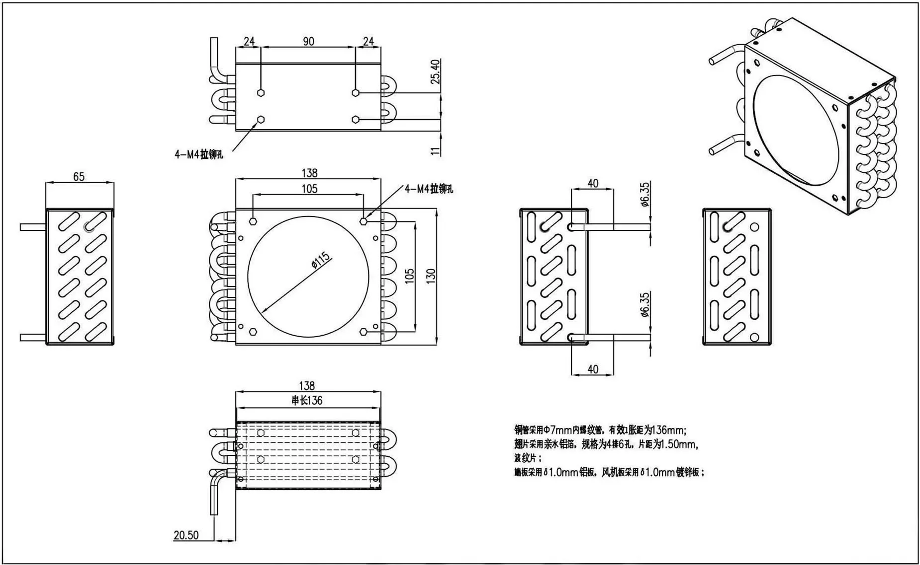 쉘 콘덴서 라디에이터 냉동고 공랭식 수냉식 선풍기 알루미늄 핀 구리 튜브 열교환기
