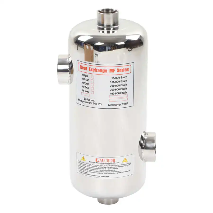 1. 스테인리스 스틸 소재: 수영장 열교환기는 고급 부식 방지 스테인리스 스틸, 방청 및 염수 저항, 내구성이 뛰어납니다.