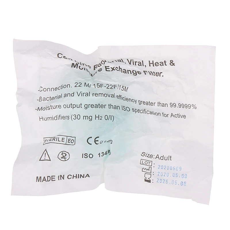 참조 표준: YY/T 0735 마취 및 호흡기 가습 인간 호흡 가스 열 및 수분 교환 유효 여과 영역: 18.I cm & sup3;