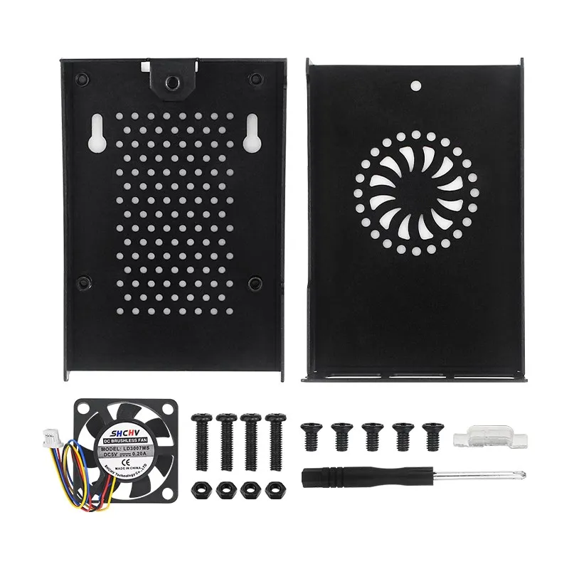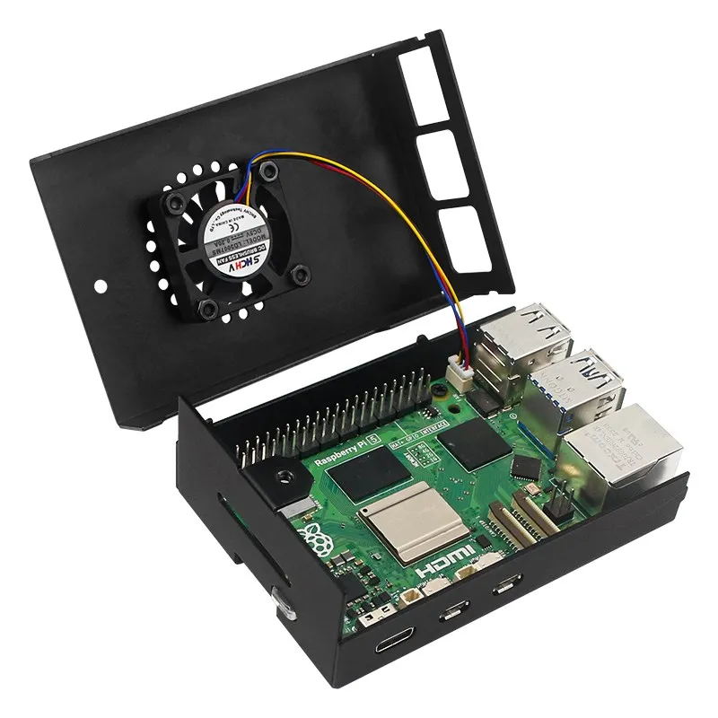 팬이있는 라즈베리 파이 5 알루미늄 케이스 액티브 패시브 냉각 라디에이터 RPI 5 용 블랙 메탈 쉘