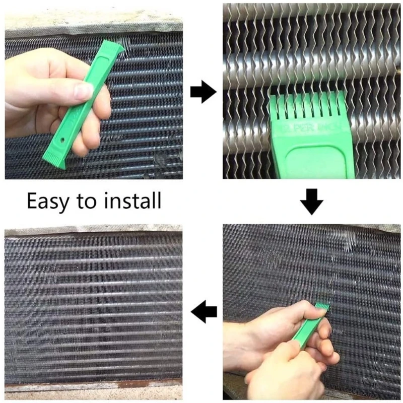 핀 빗은 플라스틱에서 선택됩니다. 응축 장치에 오래된 핀을 곧게 펴십시오. 이 핀 빗 도구는 구부린 핀을 수리하여 장치가 최고 효율로 작동하고 증발기 및 응축기를 청소합니다.