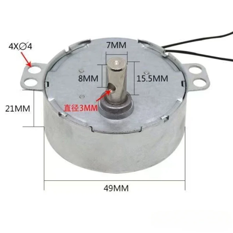 일반적인 응용 프로그램: 히터/선풍기/크리스마스 트리/마사지 기계/동적 디스플레이/공예 조명/팝콘 기계/장난감/바베큐 오븐, 다양한 에어컨 용 에어 가이드 모터 및 전자 레인지 용 턴테이블 모터 등
