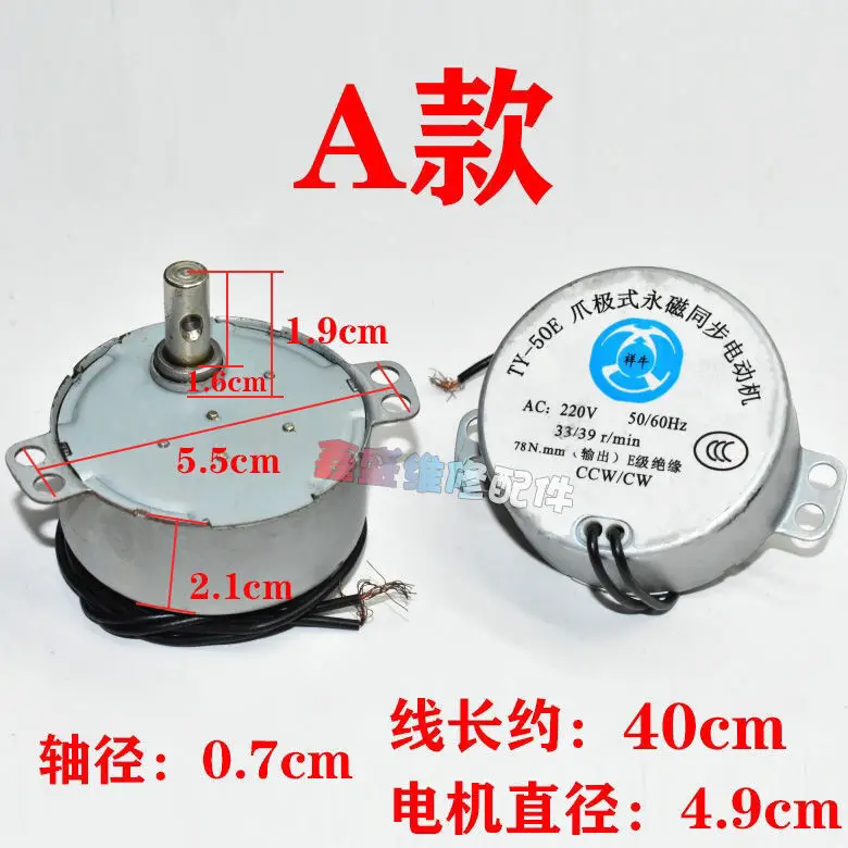 TY-50E 영구 자석 동기 모터 산업용 회전 바닥 선풍기 모터 쉐이킹 헤드 4W AC 220V 2.53rpm CW CCW 혼 선