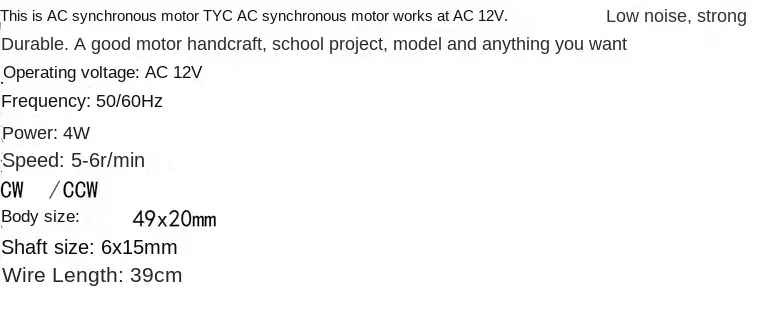 전기 선풍기 안정적인 동기 모터 5-6 rmin Pro TYC-50 AC 220V 12V 50Hz 60Hz 토크 4 KGF.CM 4W CWCCW 마이