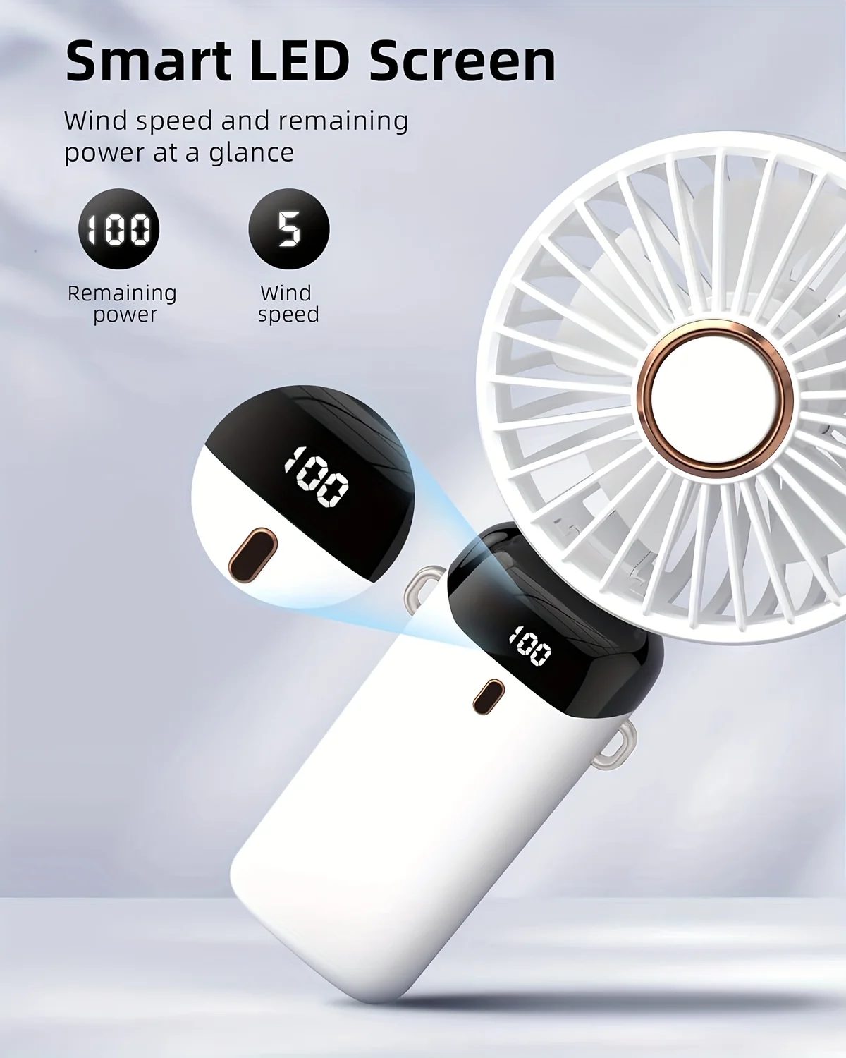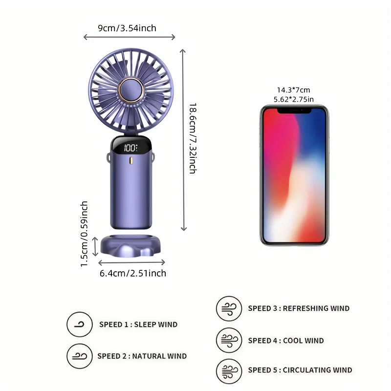 LED 디스플레이가 있는 휴대용 USB 선풍기 조용한 5 단 접이식 미니 선풍기 학생 유모차 및 여행용 여름 냉