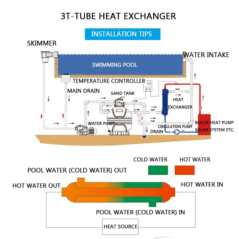 수영장 스파 냉온수 열교환 기 스테인레스 스틸 3 T 열교환 기 수영장 튜브 열교환 기