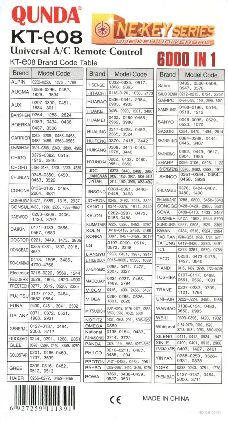Compatible Model: KT-e08e for Toshiba Panasonic Sanyo Fujitsu KT-e08 6000 in 1 One Key Series