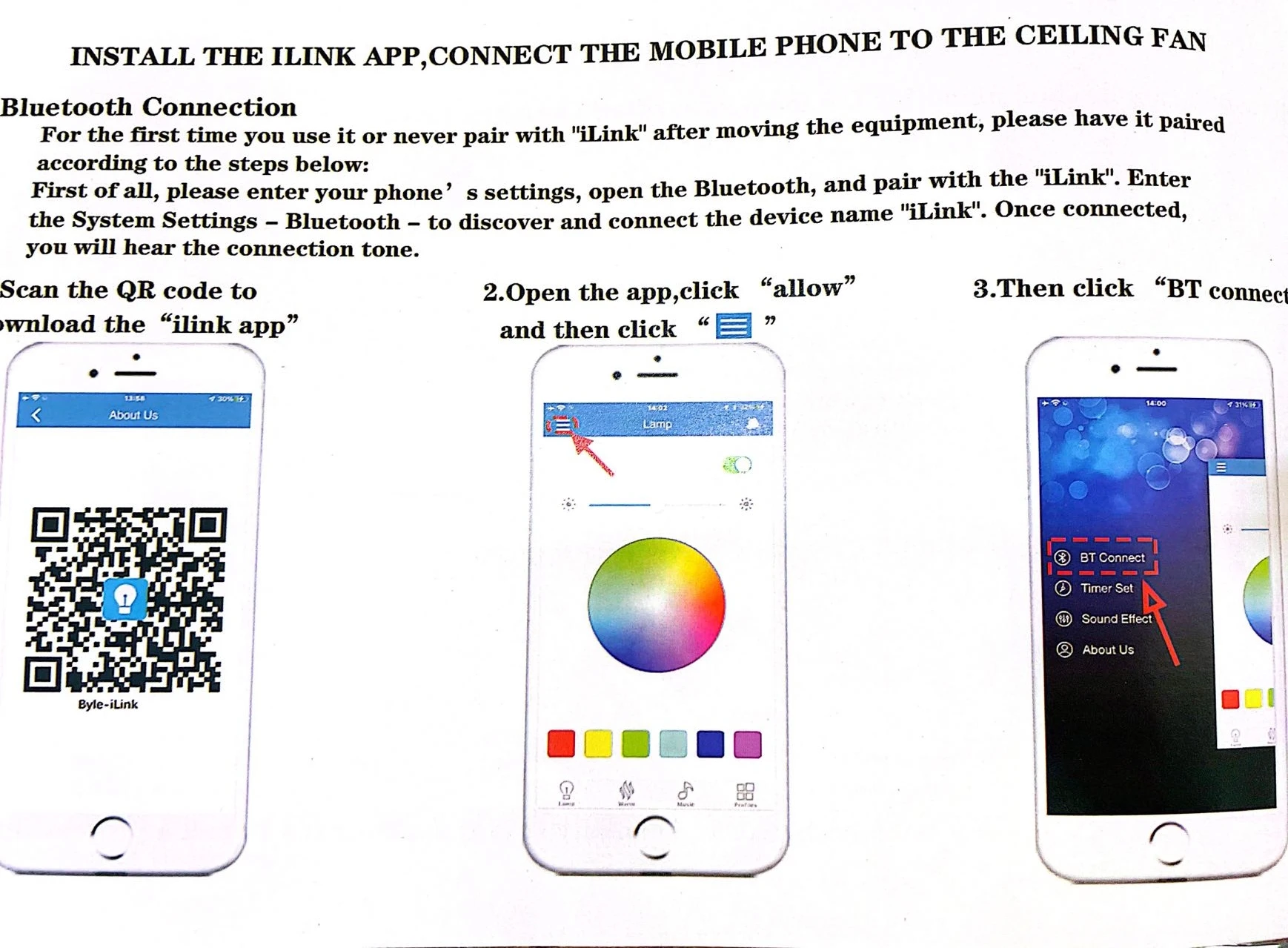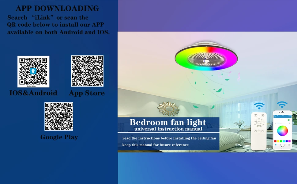 스마트 ILINK 앱: 인생을 바꾸십시오! (참고: APP는 팬이 아닌 조명 만 제어 할 수 있습니다)